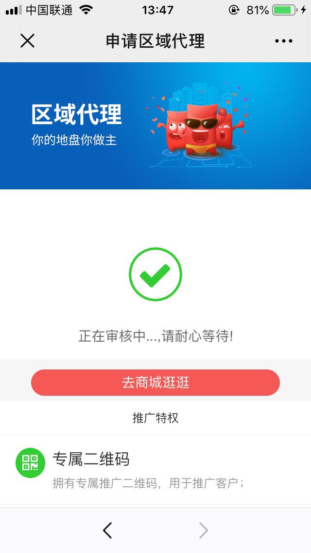 ## 后台审核,审核通过会员成为区域代理,否则就不能