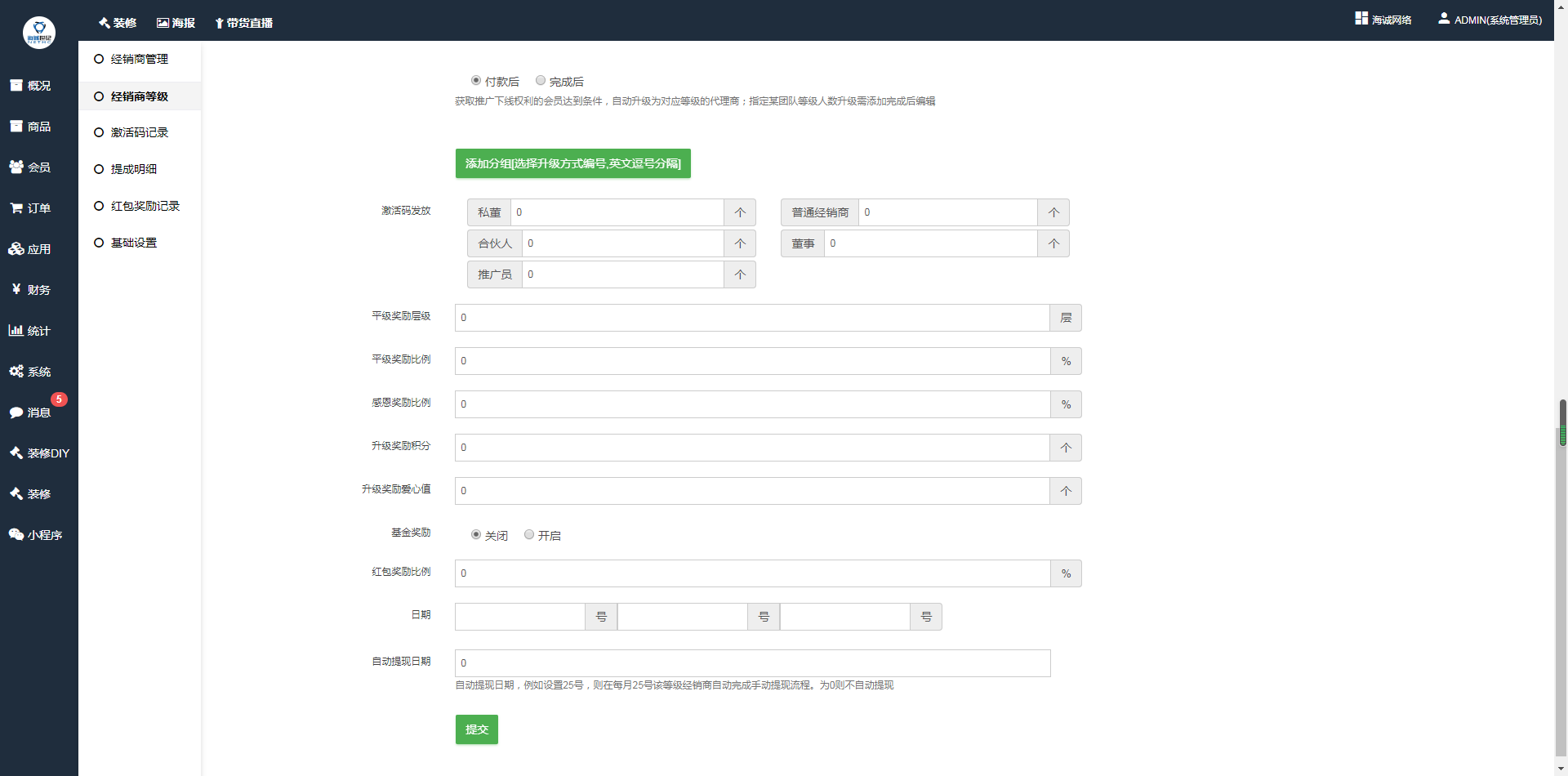 ## 一、添加经销商等级