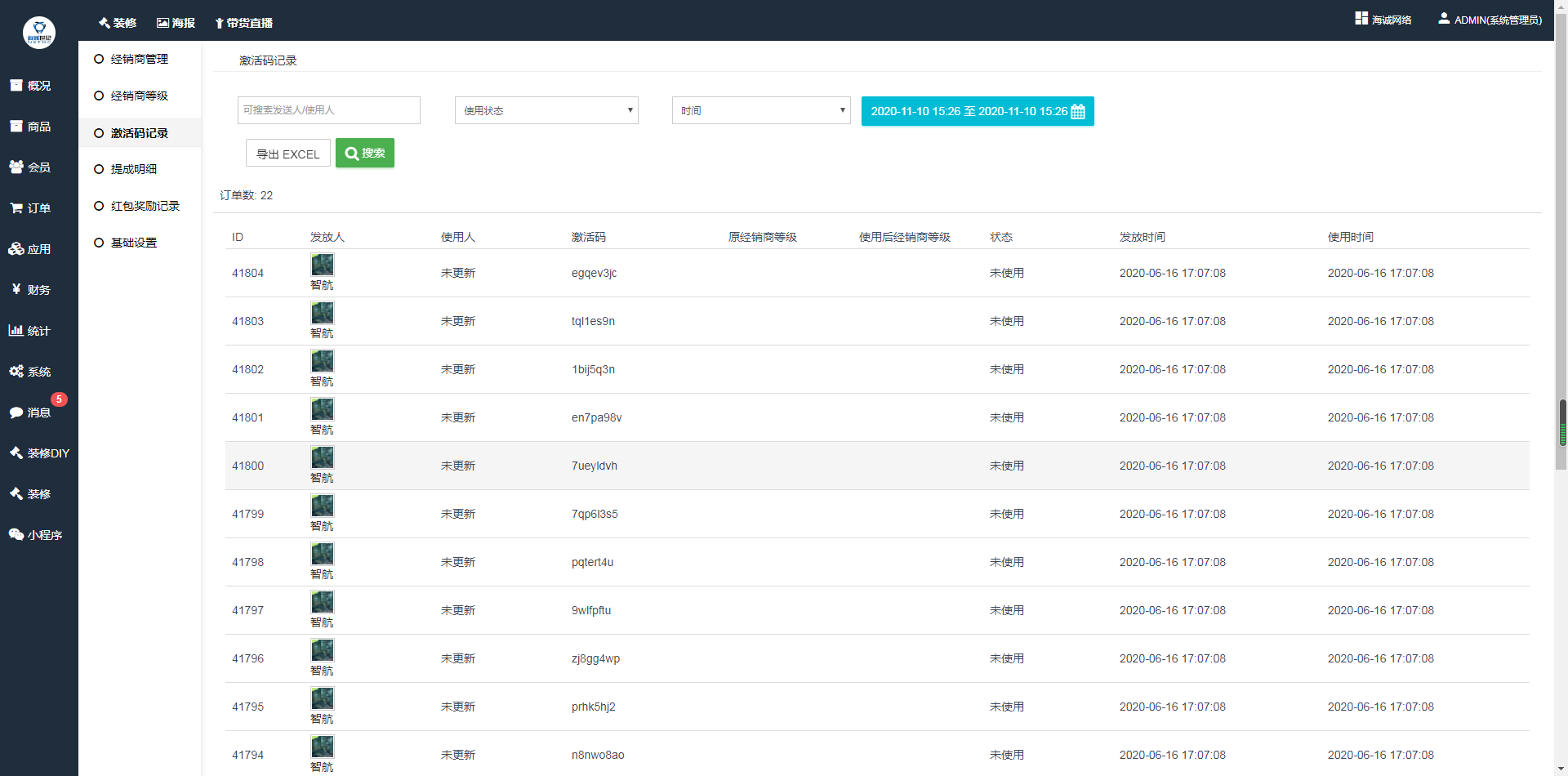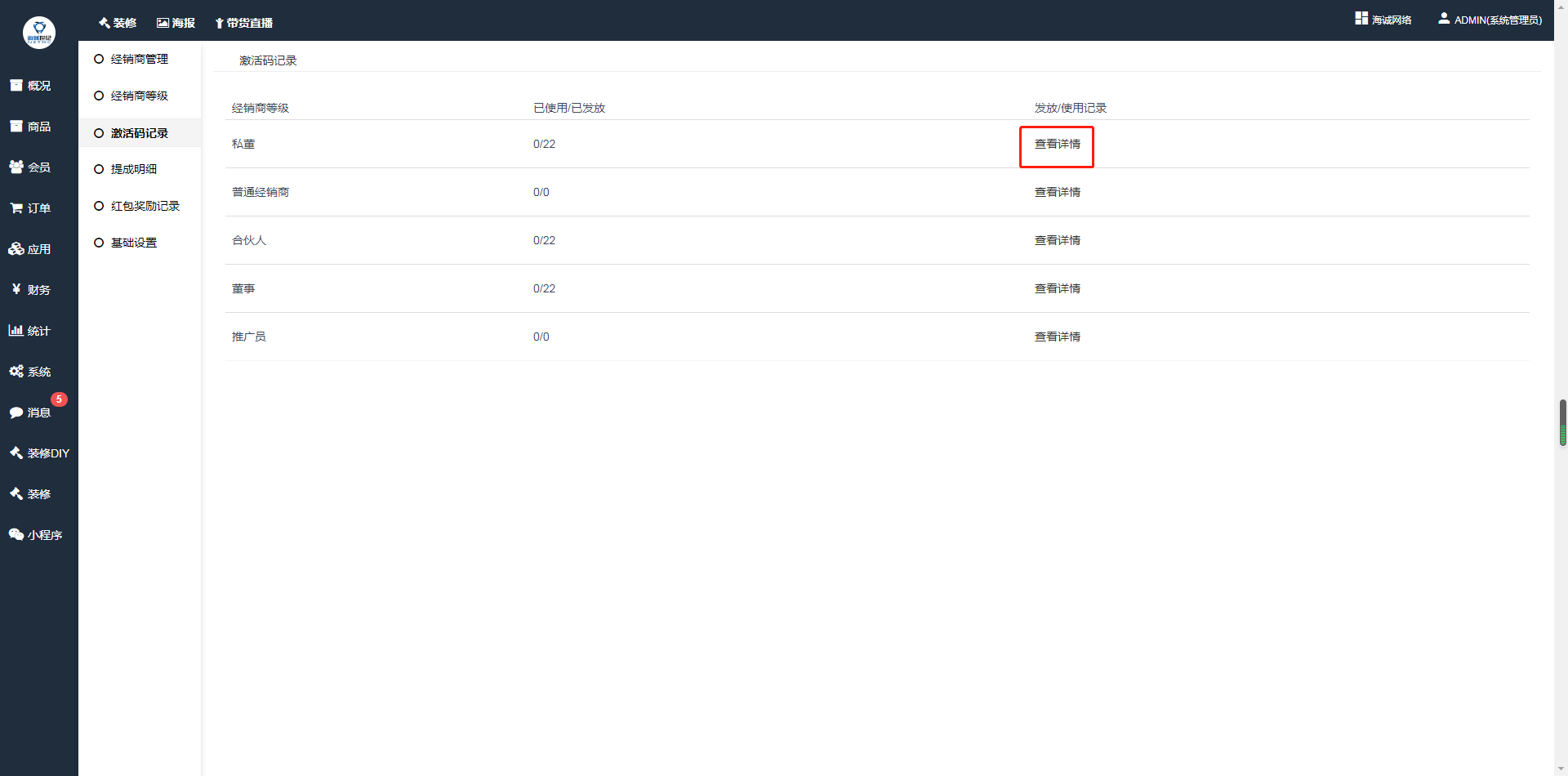 ## 可查看每个经销商等级的激活码的使用情况