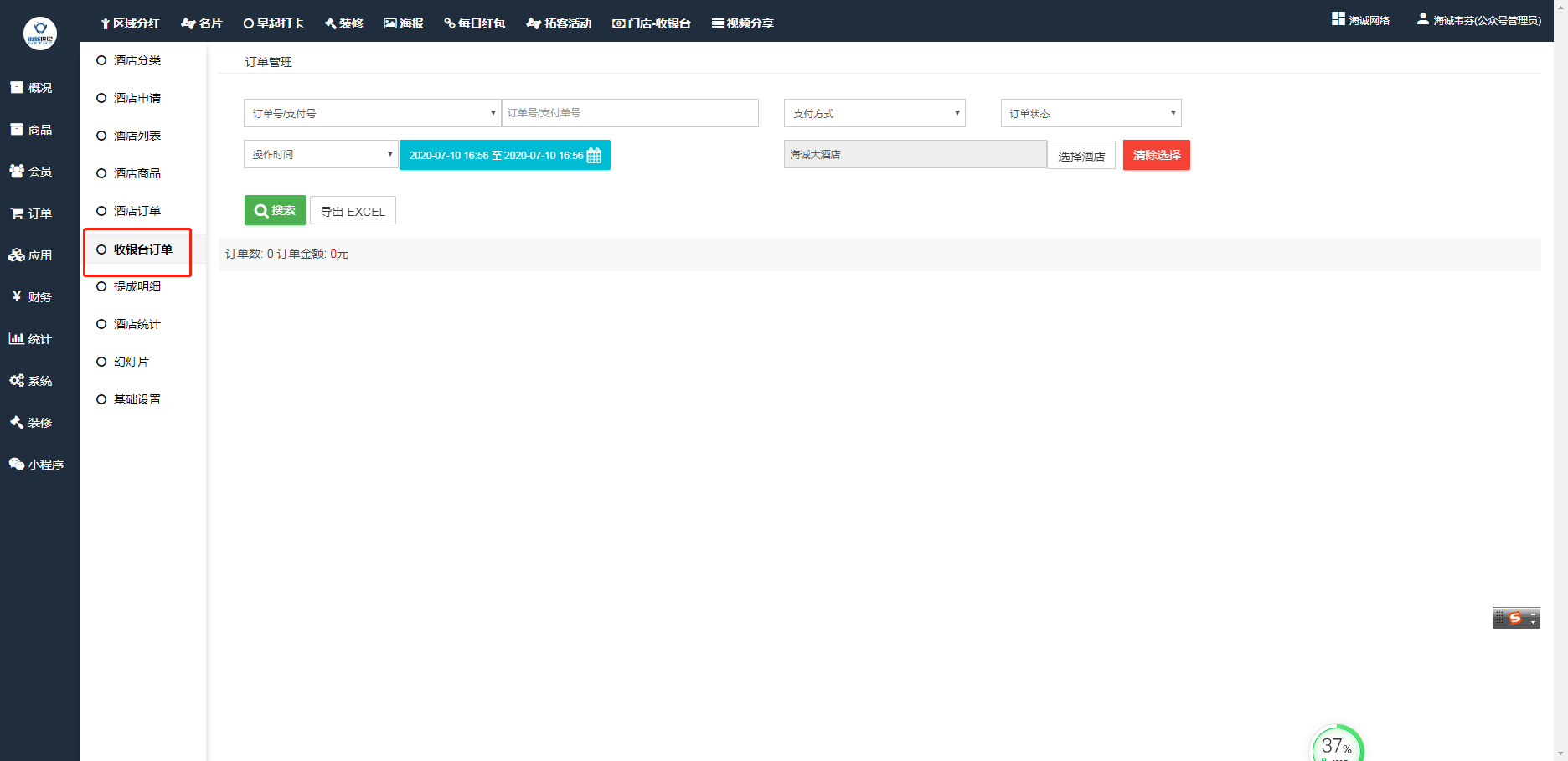 ## 平台在收银台订单可以查看到所有酒店收银台商品销售订单。