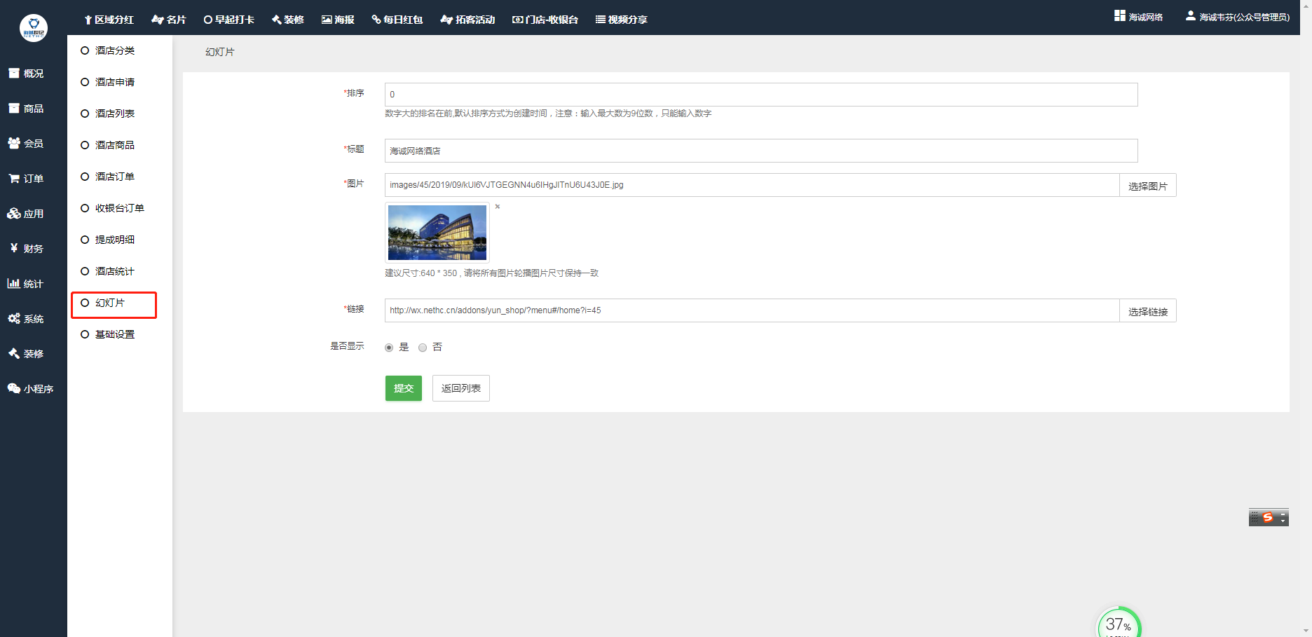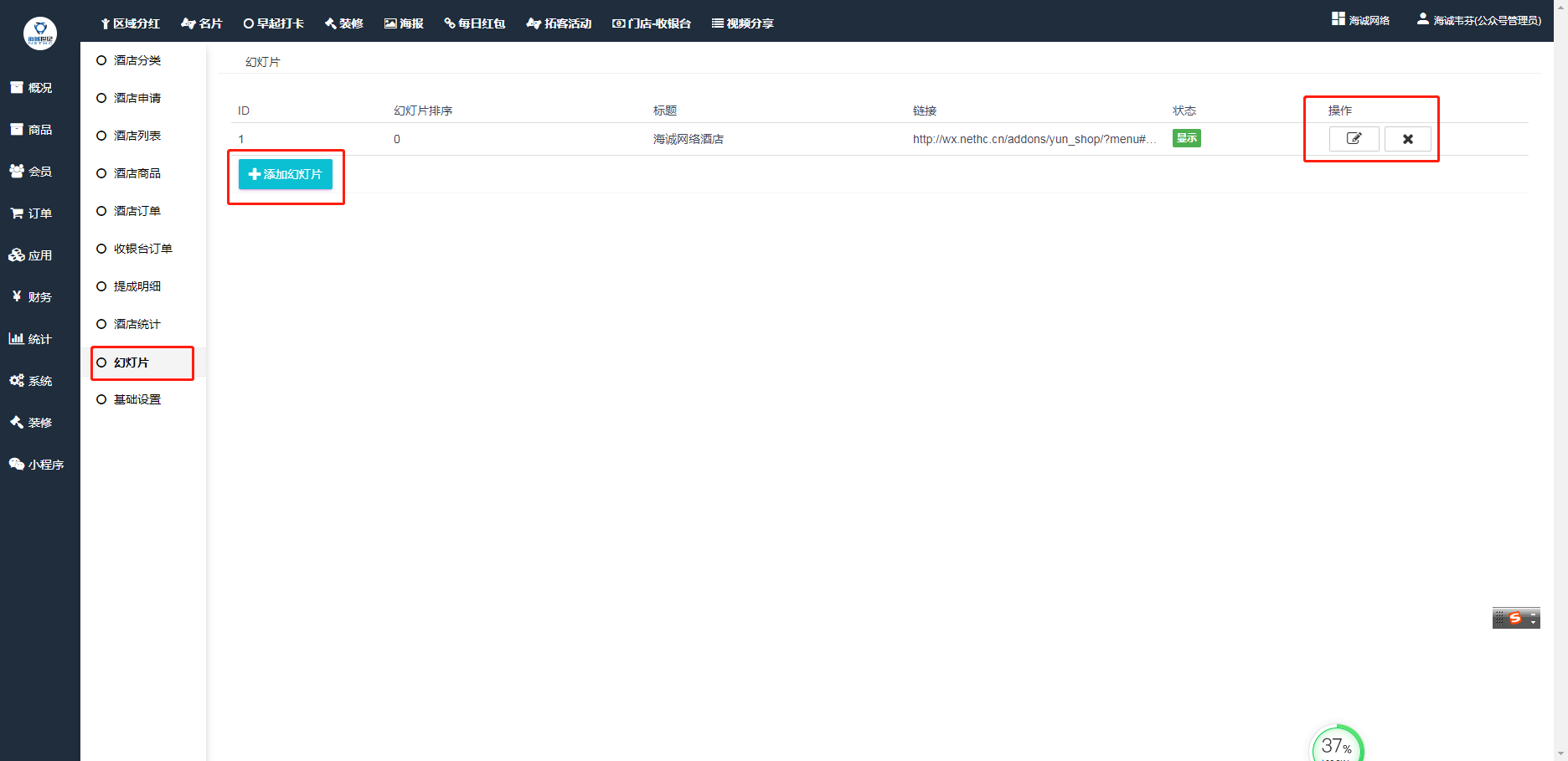 ## 在商城后台—幻灯片添加几个幻灯片,即可在前端展示轮播,后台截图: