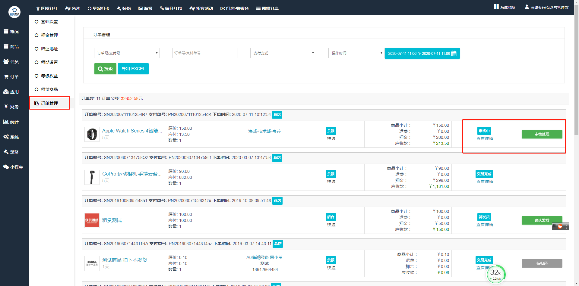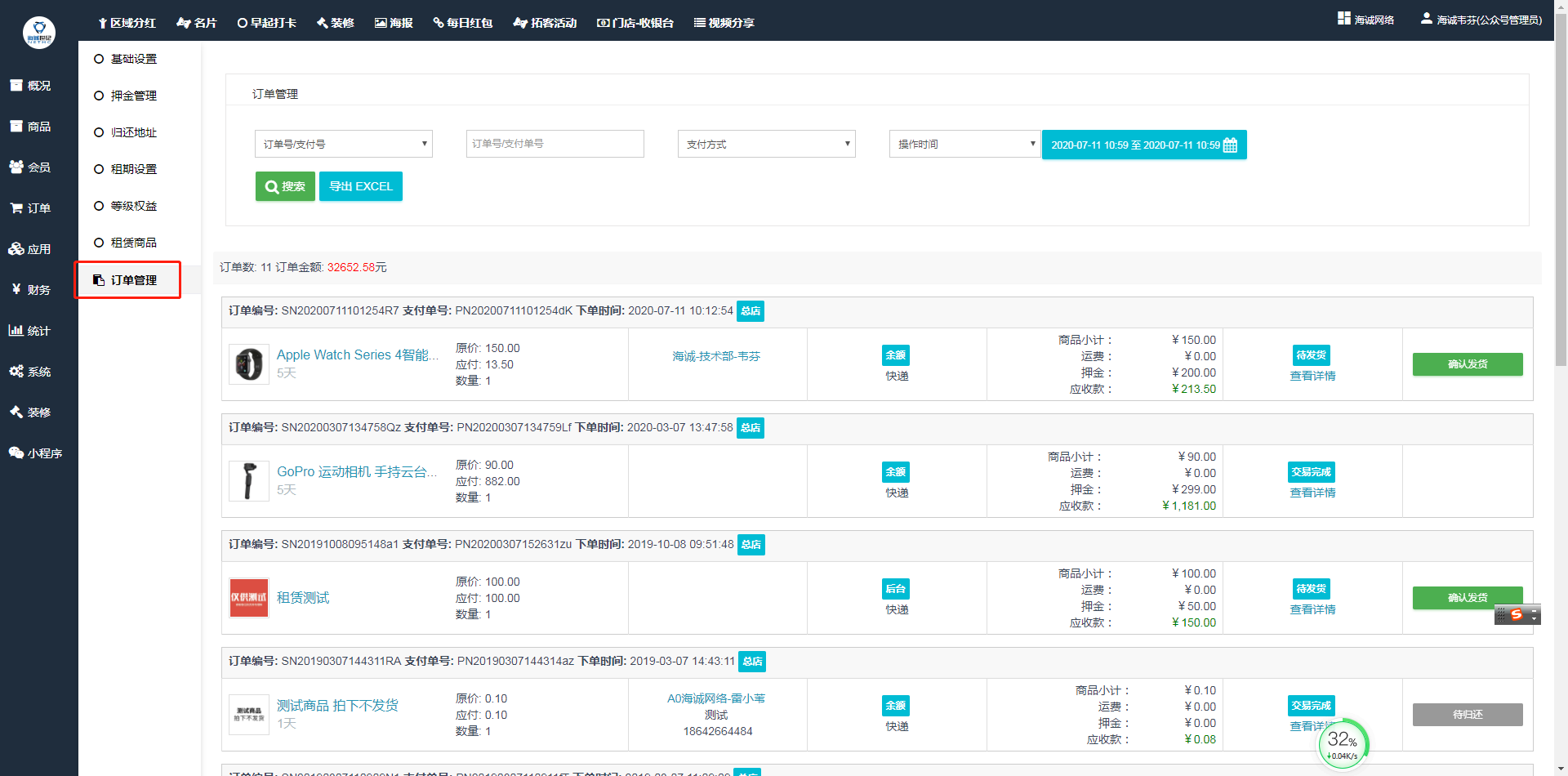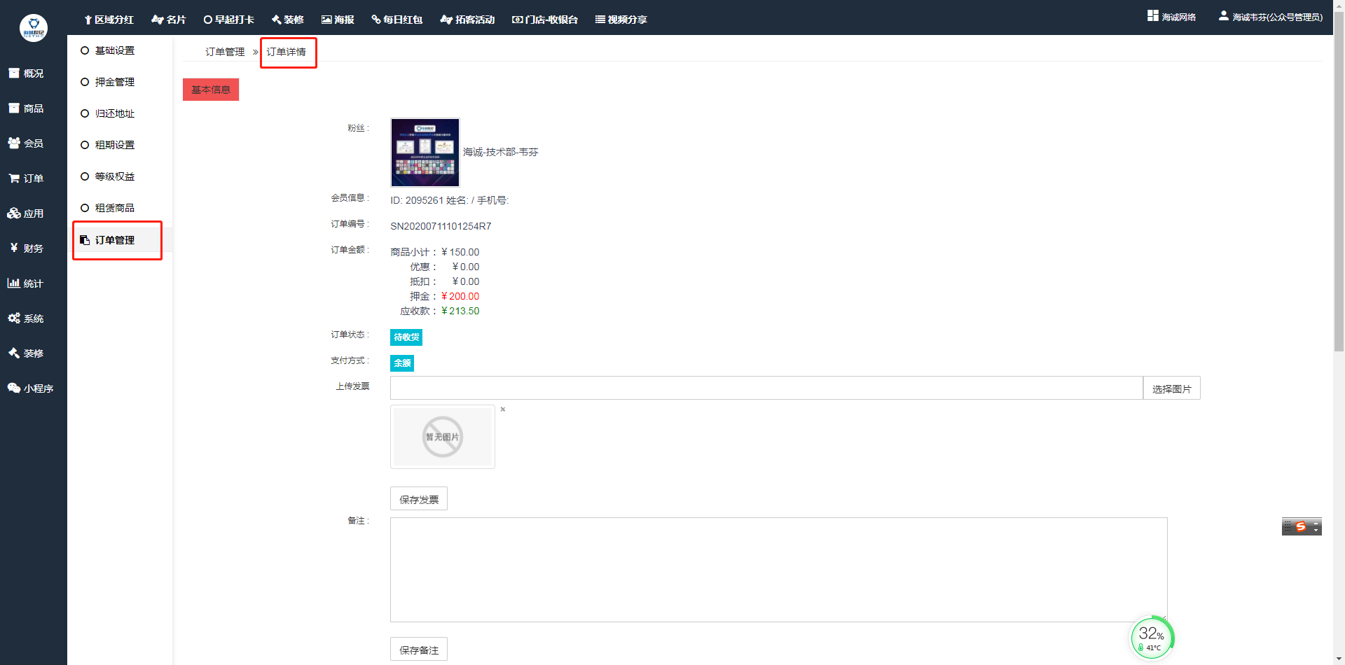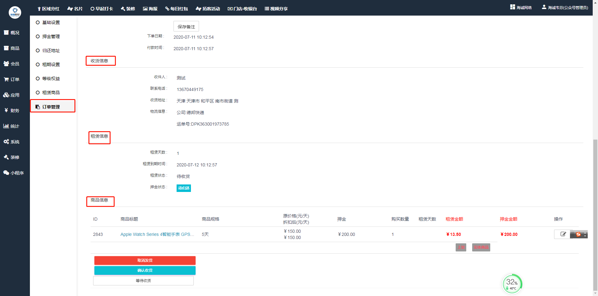 ## 租赁订单只能在**租赁插件\--订单管理**中进行管理。