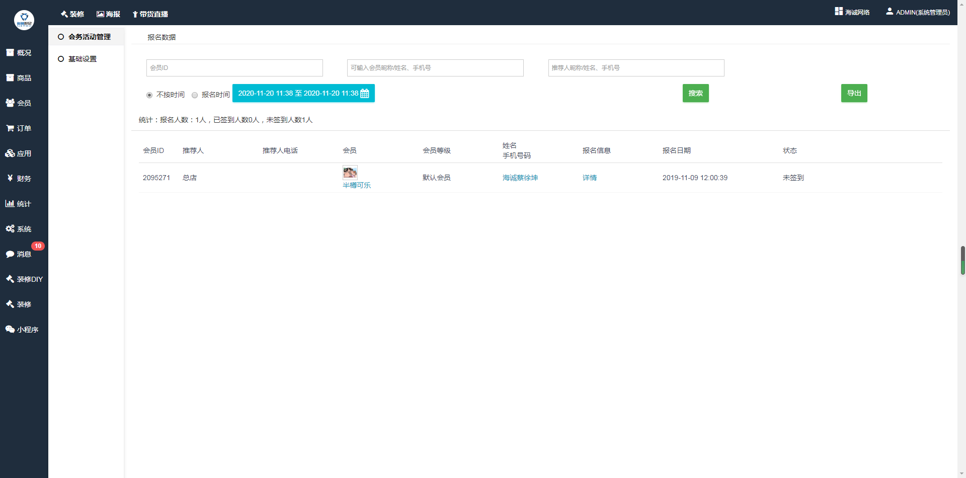 ## 5.后台查看导出会员报名信息