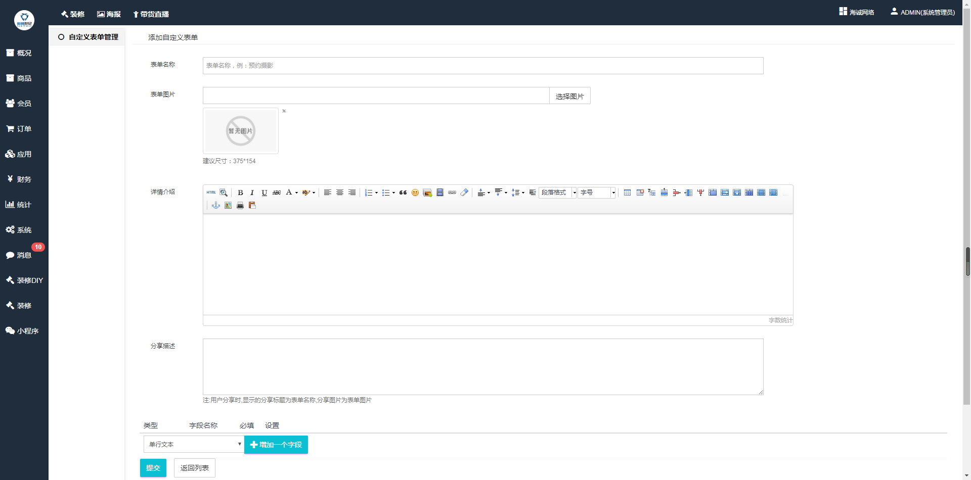 ## (2)点击添加新表单,填写上相应活动的信息