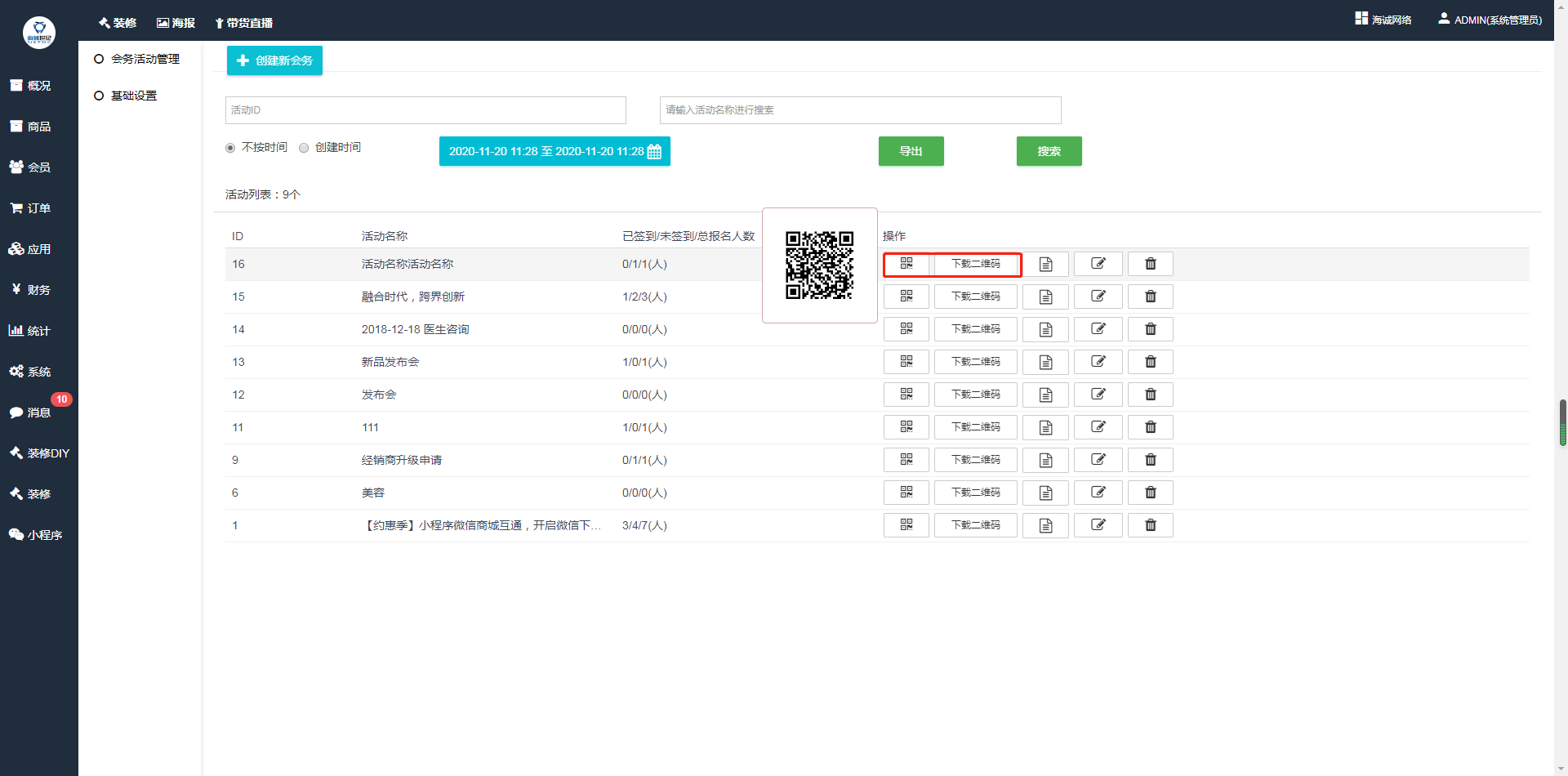 ## 后台签到二维码查看和下载
