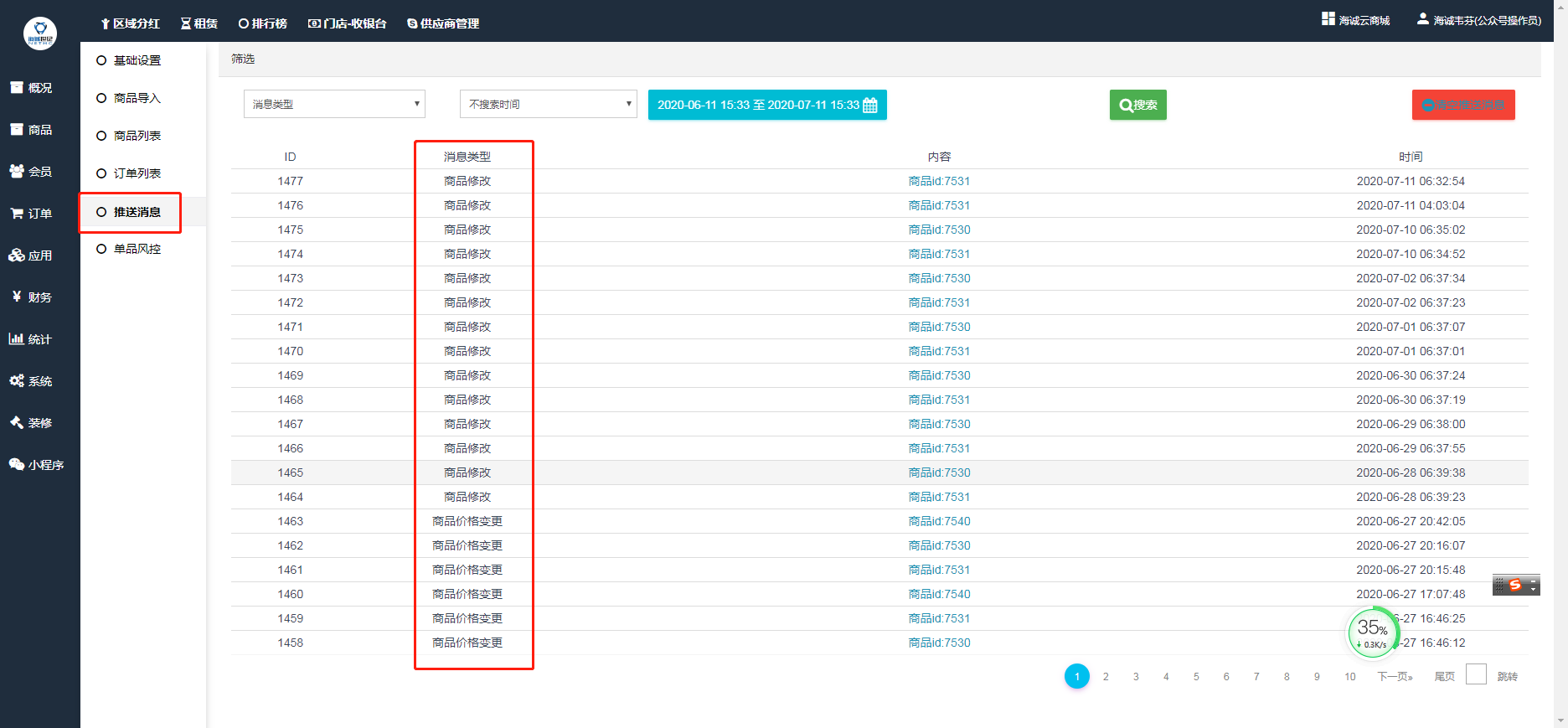 ## 推送消息里可查询到供应链推送过来的所有有变动的商品信息,进行调整