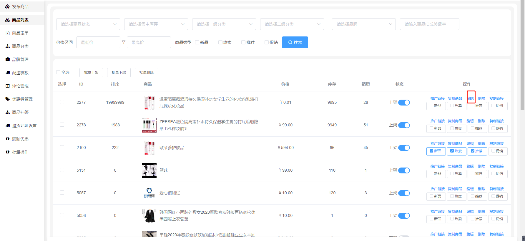 ### 2、找一款需要赠送优惠卷的商品进行编辑或者新添加一款新产品也可以。两者相同。