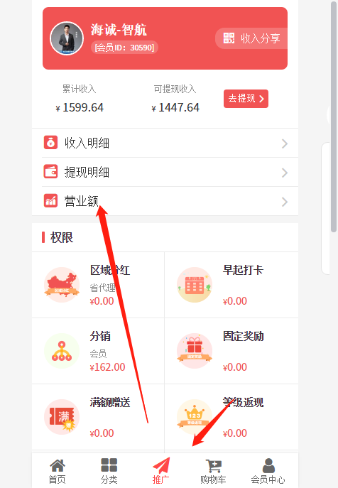 ## 5、商城业绩显示:是否开启显示商城的营业额,开启后,在前端推广-营业额才能查看