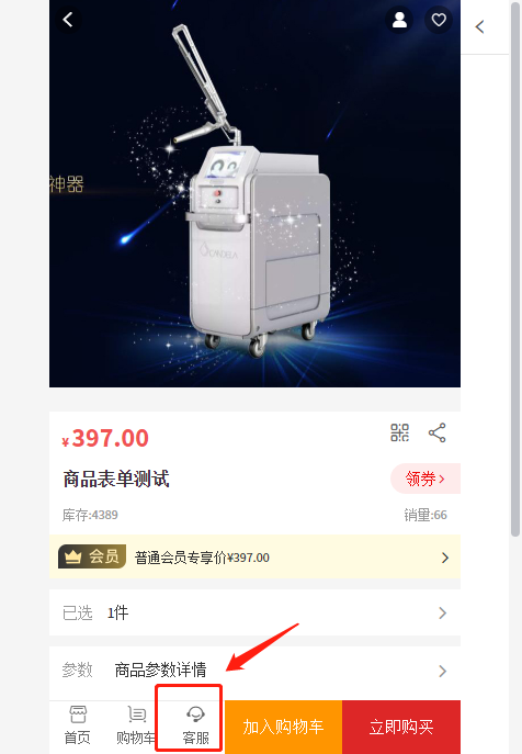 ## 7、客服链接:设置链接后,前端商品详情页自动多一个客服按钮,按钮链接这里设置的客服链接