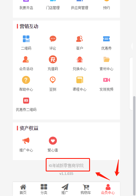 ## 8、版权信息:前端会员中心显示的版权信息