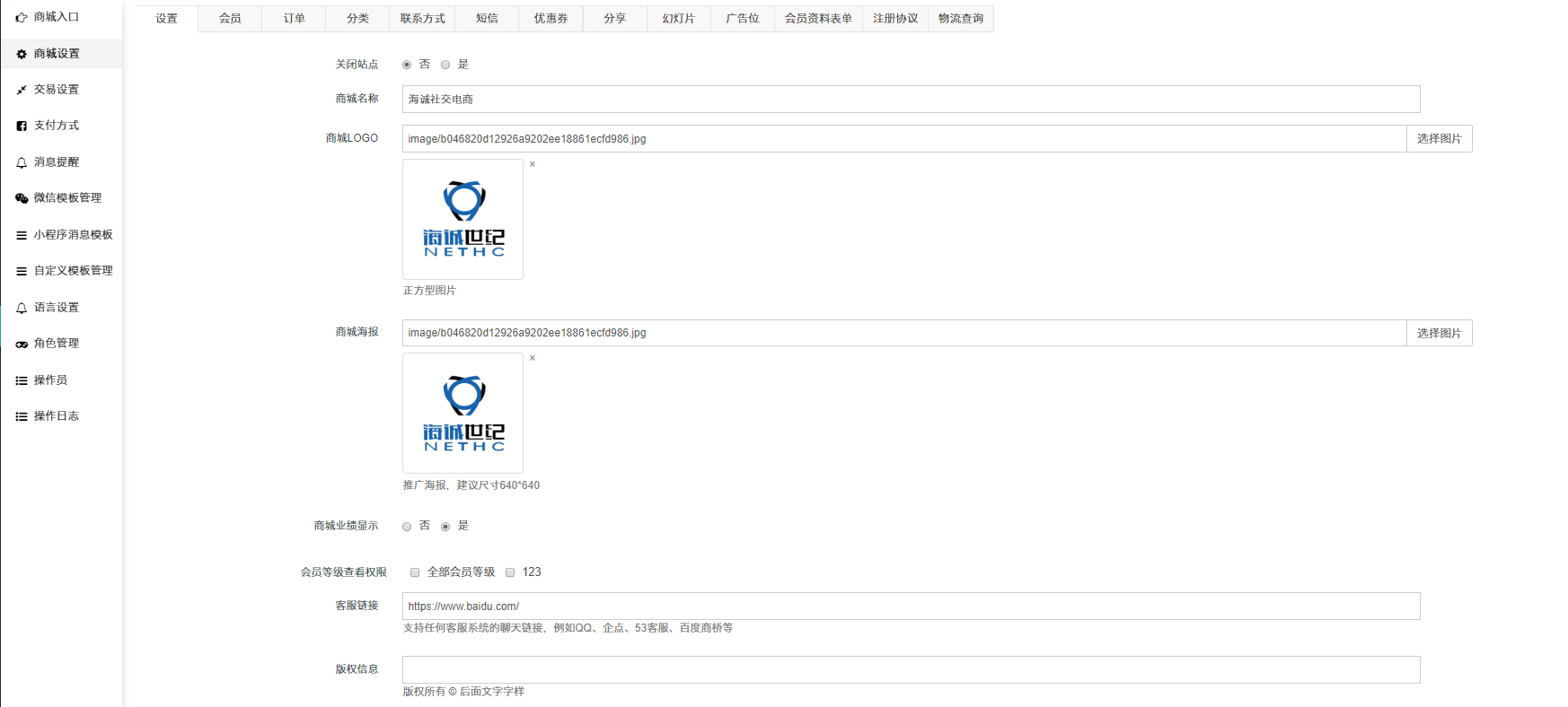 ## 3、商城LOGO:商城显示的LOGO,如分享设置没有单独设置LOGO,分享时默认显示商城LOGO