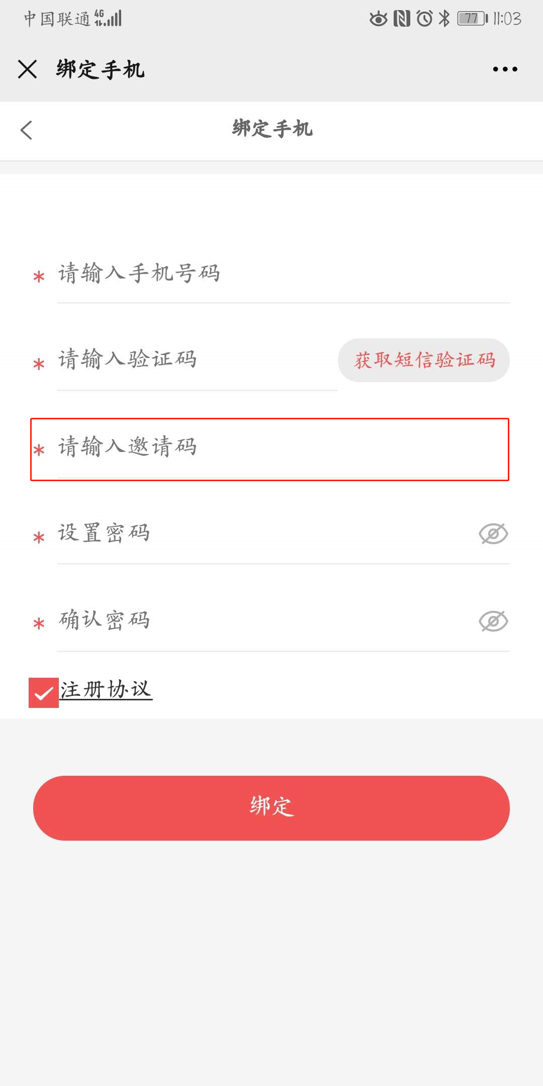 ## 13、邀请页面:单独的填写邀请码的页面,邀请页面与强制绑定手机页面不能同时启用