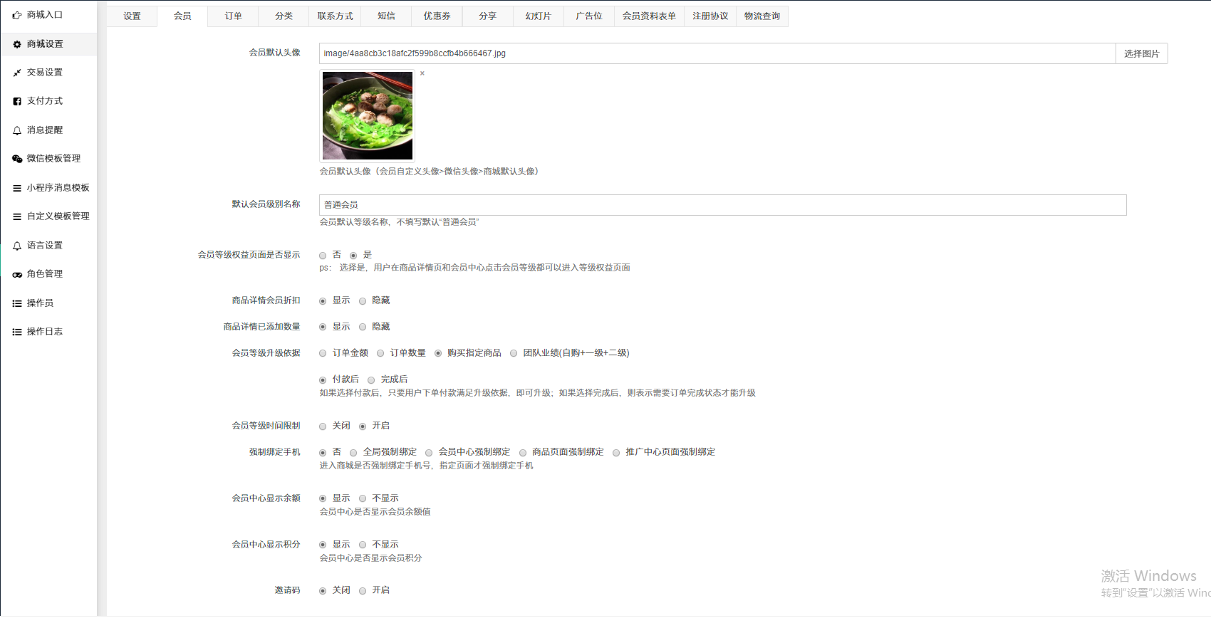 - 商城设置