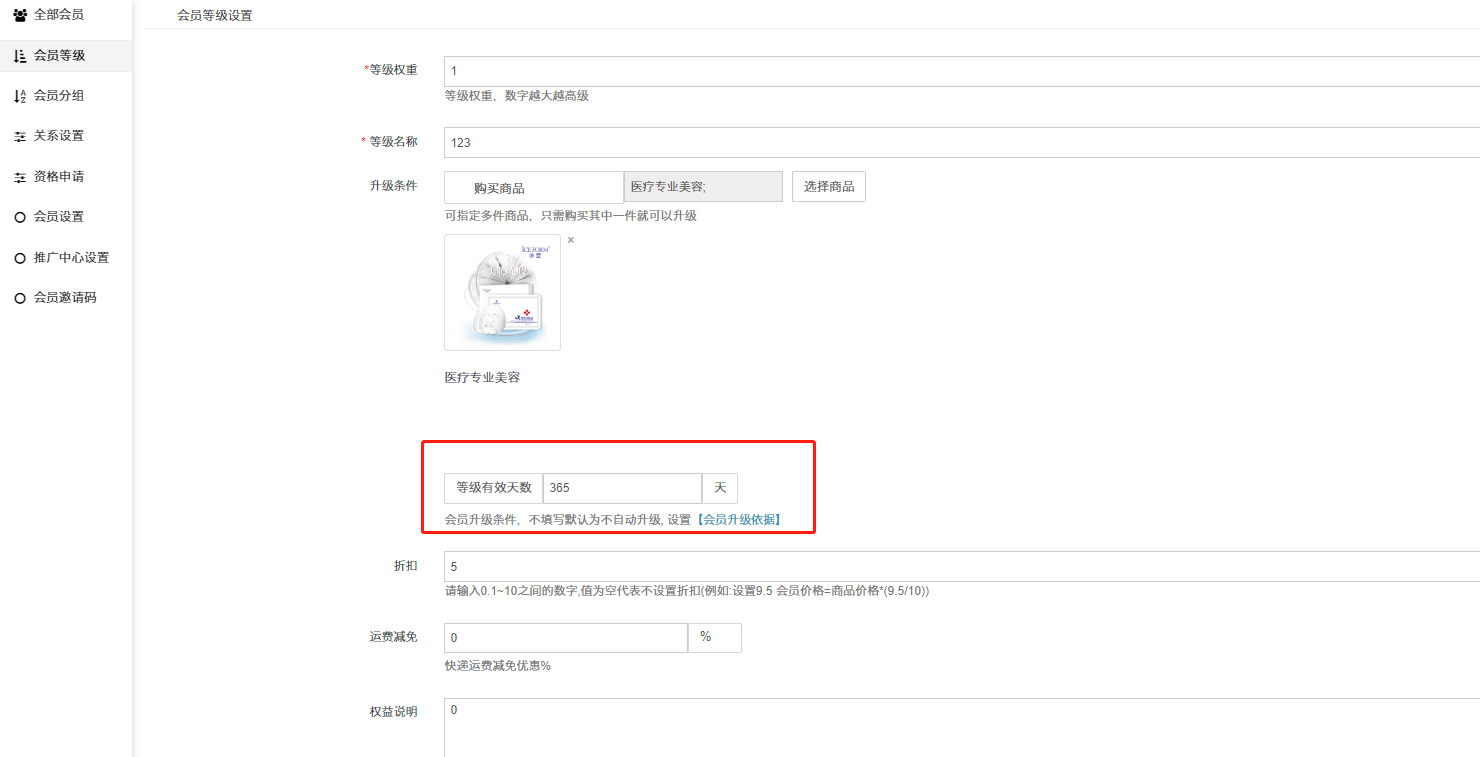 ## 7、会员等级时间限制:是否开启会员等级有时间限制,开启后需要给会员等级设置限制时间