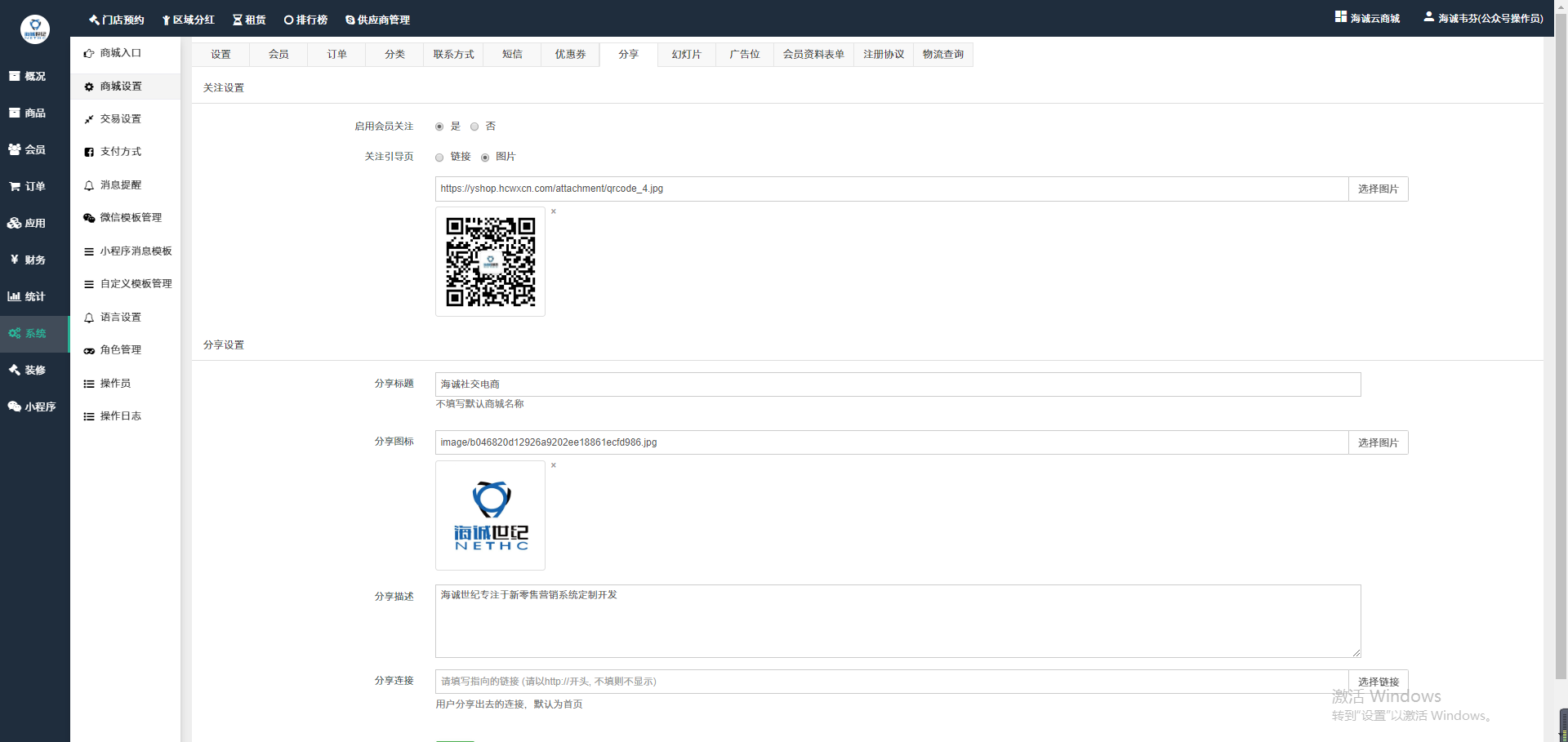 - 商城设置