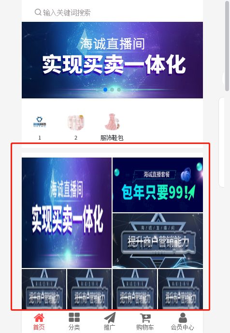 ## 当商城使用默认的页面时(自定义装修页面没有设置),首页自动显示广告位,当商城自定义页面启用时,默认页面不显示,广告位也不显示
