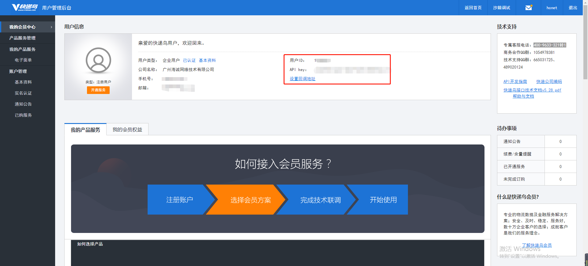 ## 用户ID和API key:这两个参数需要到快递鸟后台获取