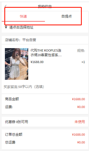 ## 快递配送:该功能需要结合自提点功能使用,关闭后,自动隐藏快递方式,只显示自提点