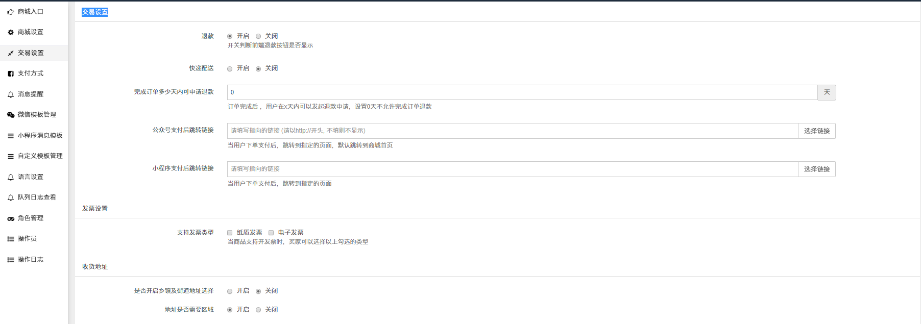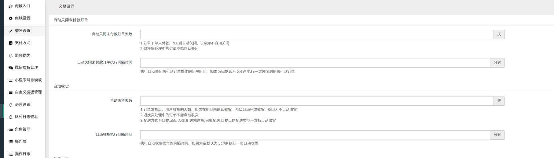 ## ①订单发货后,用户收货的天数,如果在期间未确认收货,系统自动完成收货,0/空为不自动收货