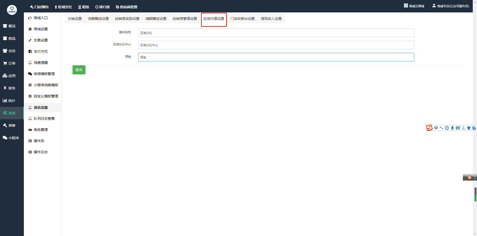 ## **后台--商城设置--语言设置—区域代理设置**(修改前端字样)