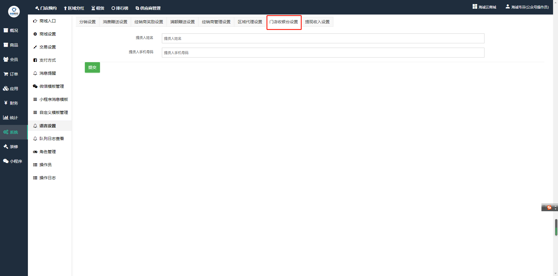 - 门店收银台设置