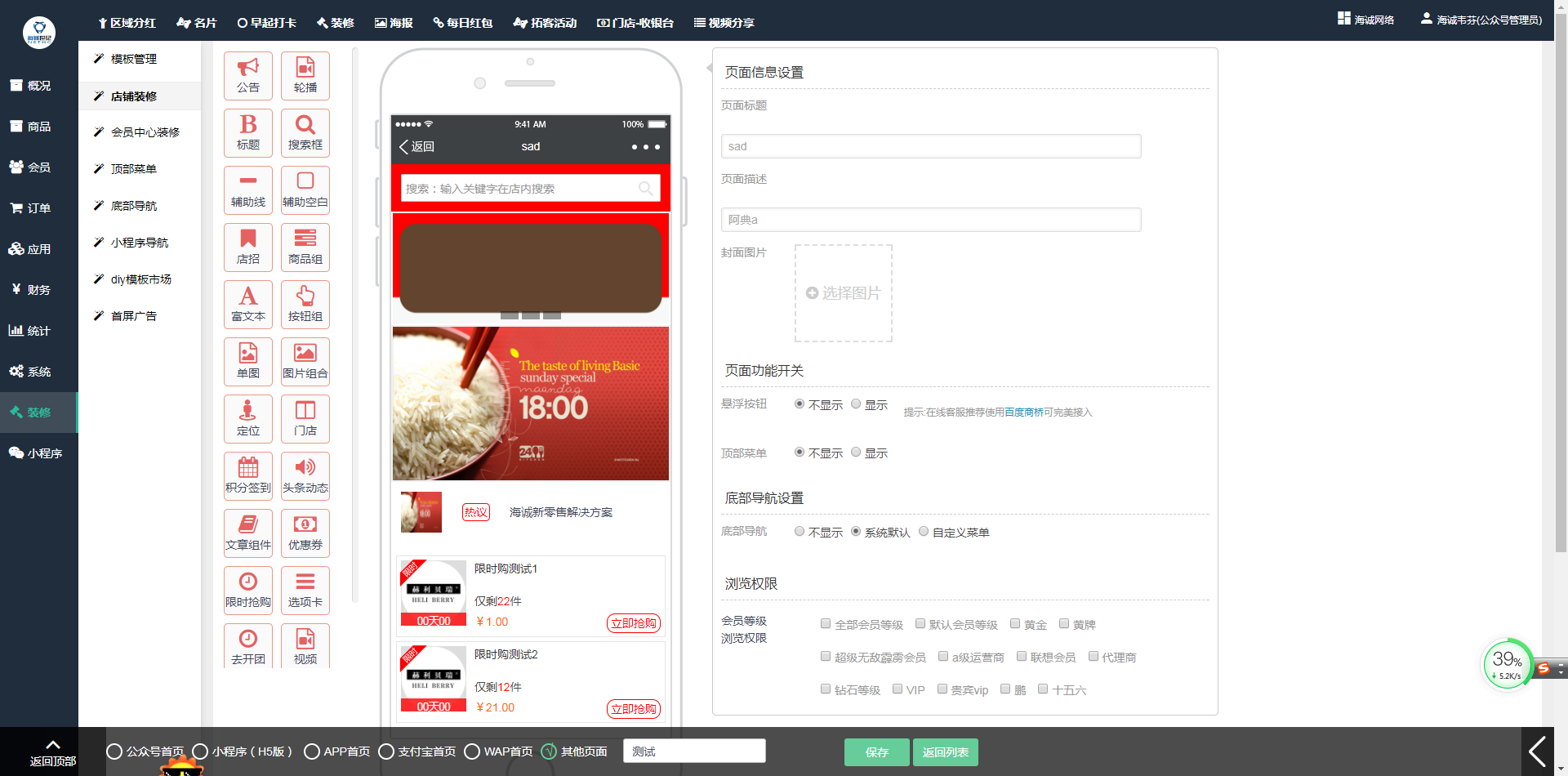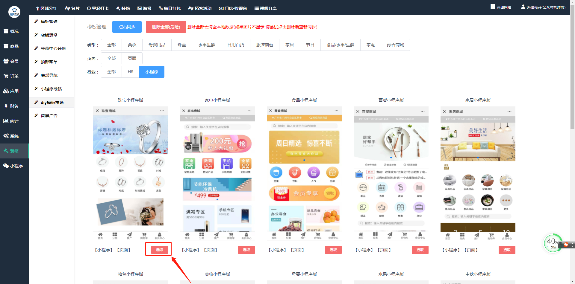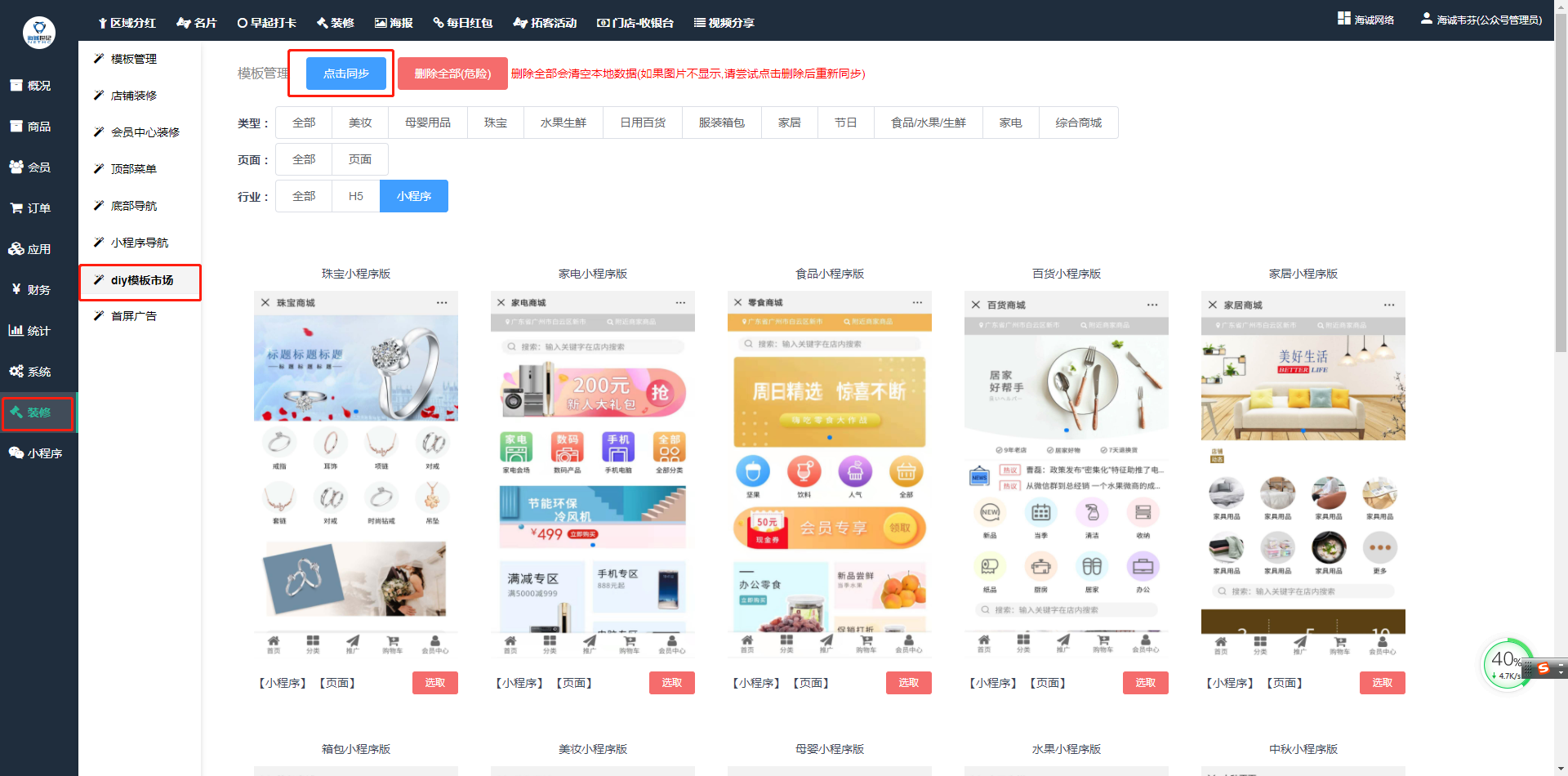 ## 一、为了方便用户快速装修和解决用户不知如何商城装修的问题,增加DIY**模板**市场,海诚将持续更新模板,操作路径