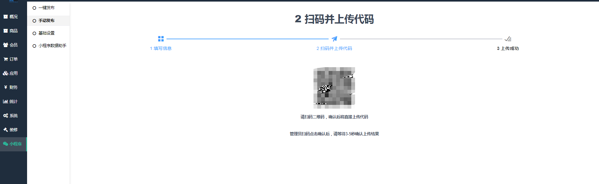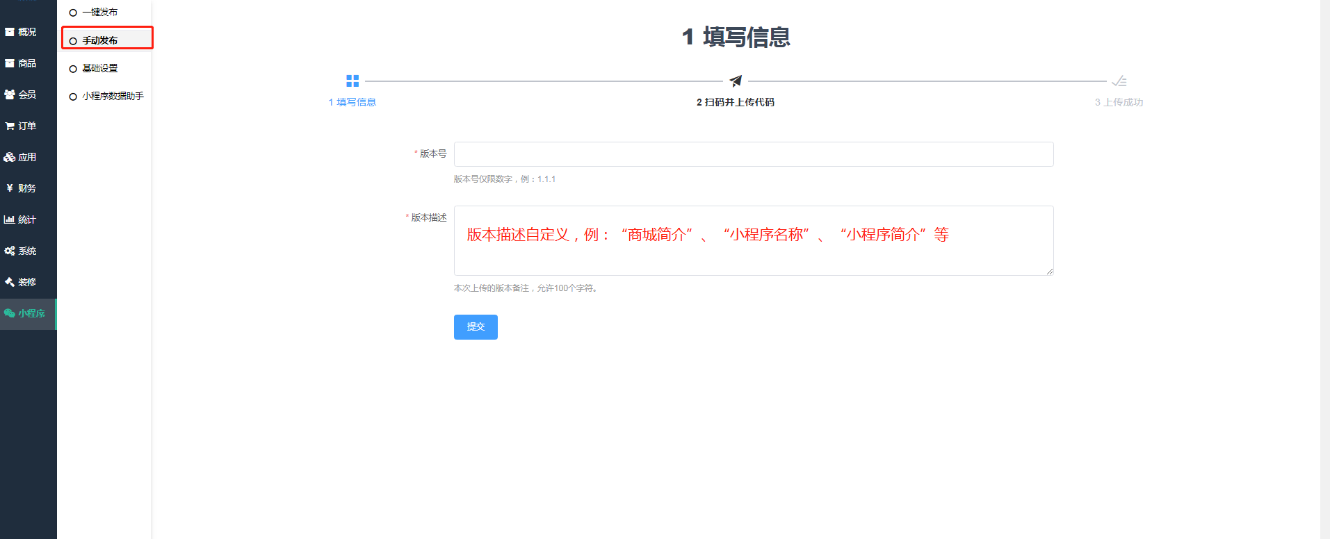 ## 第三步、后台手动发布小程序:应用–小程序–手动发布,如下图