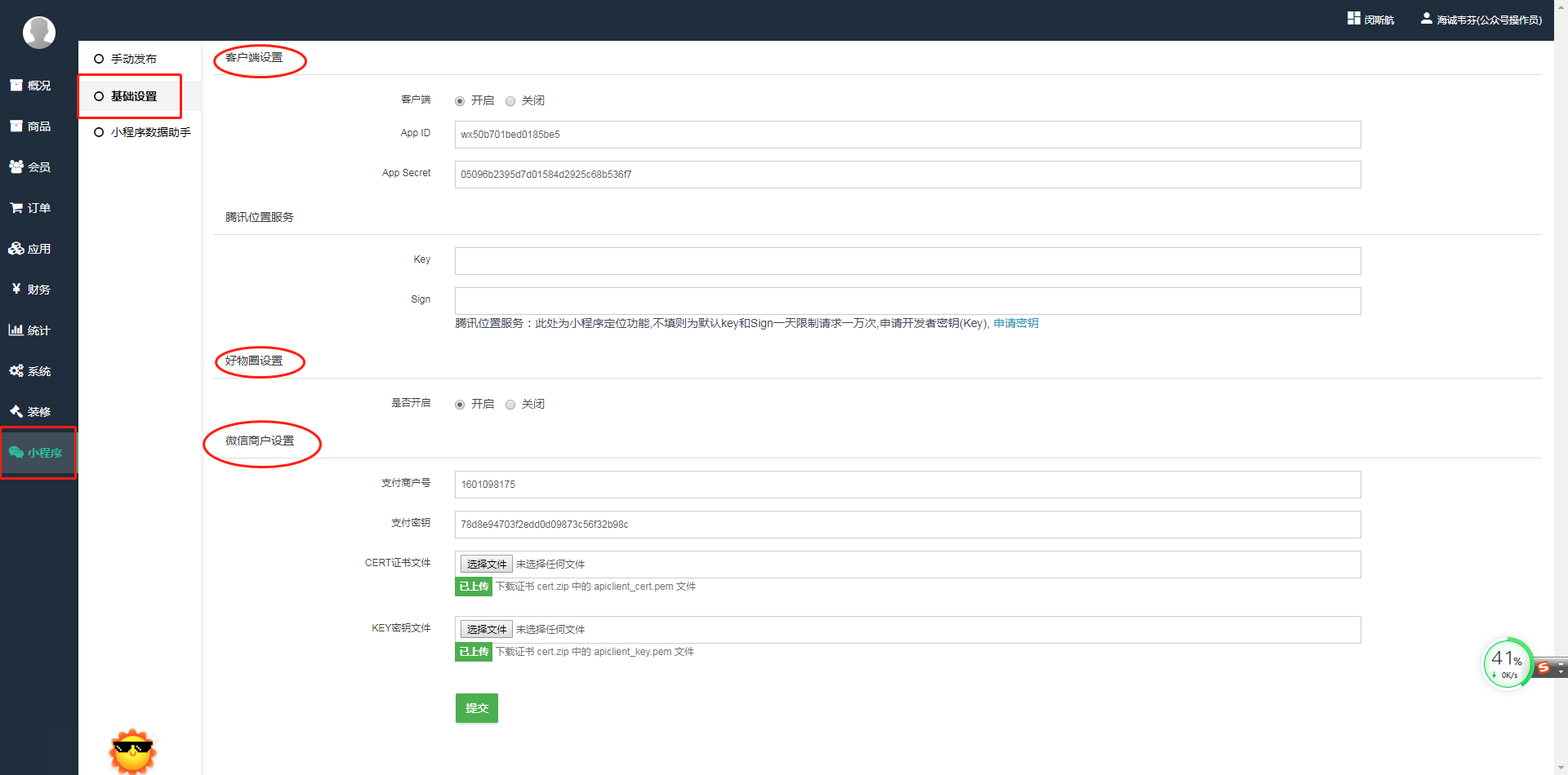 ## 4、填写微信商户设置,完善信息就可以点击提交。