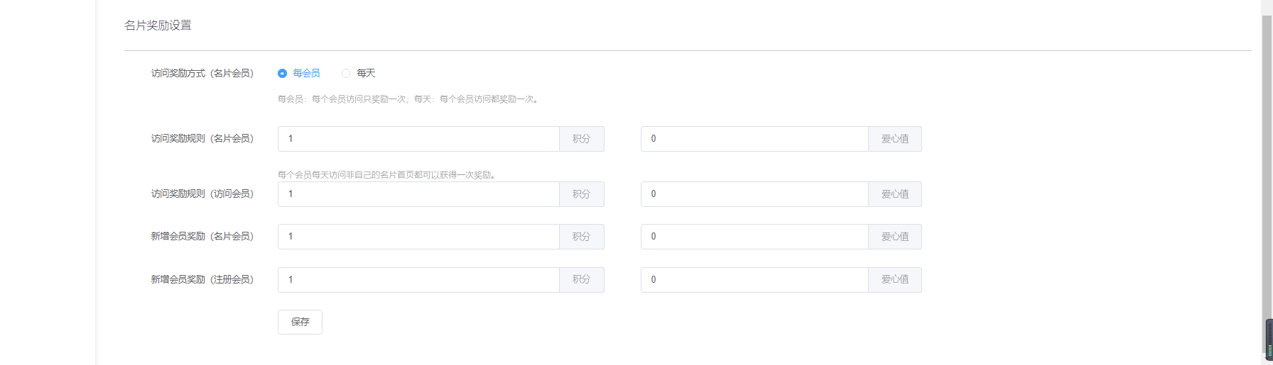 ### **二、名片奖励设置**