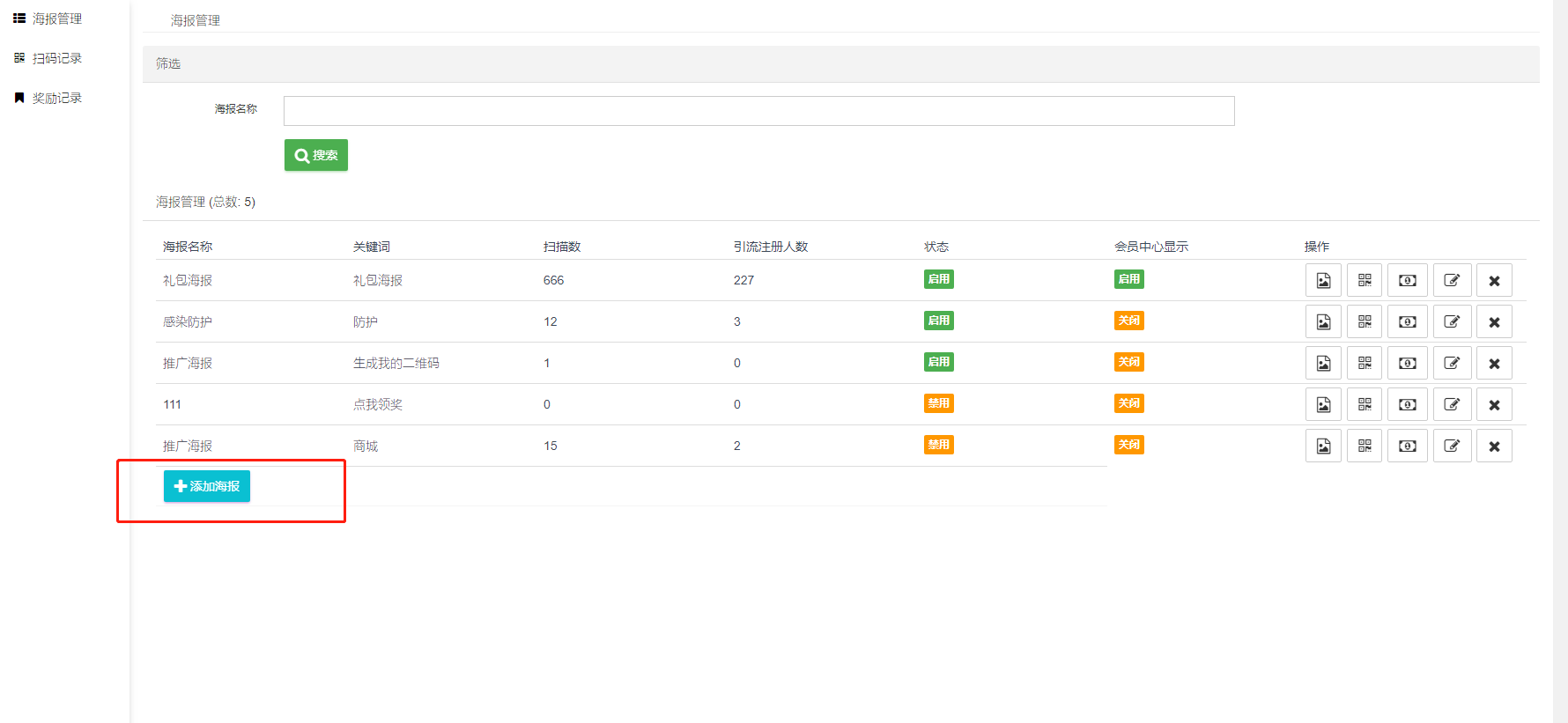 #### 2、添加海报,按照页面要求填写相关内容和开启相应功能。