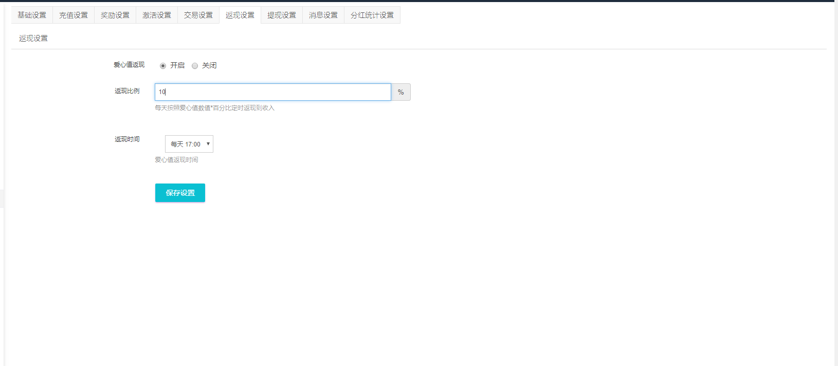 #### **返现设置**