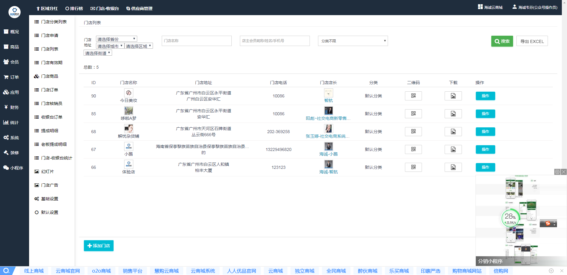 ## 在后台门店申请列表可以看到正在申请的门店,进行操作,如图: