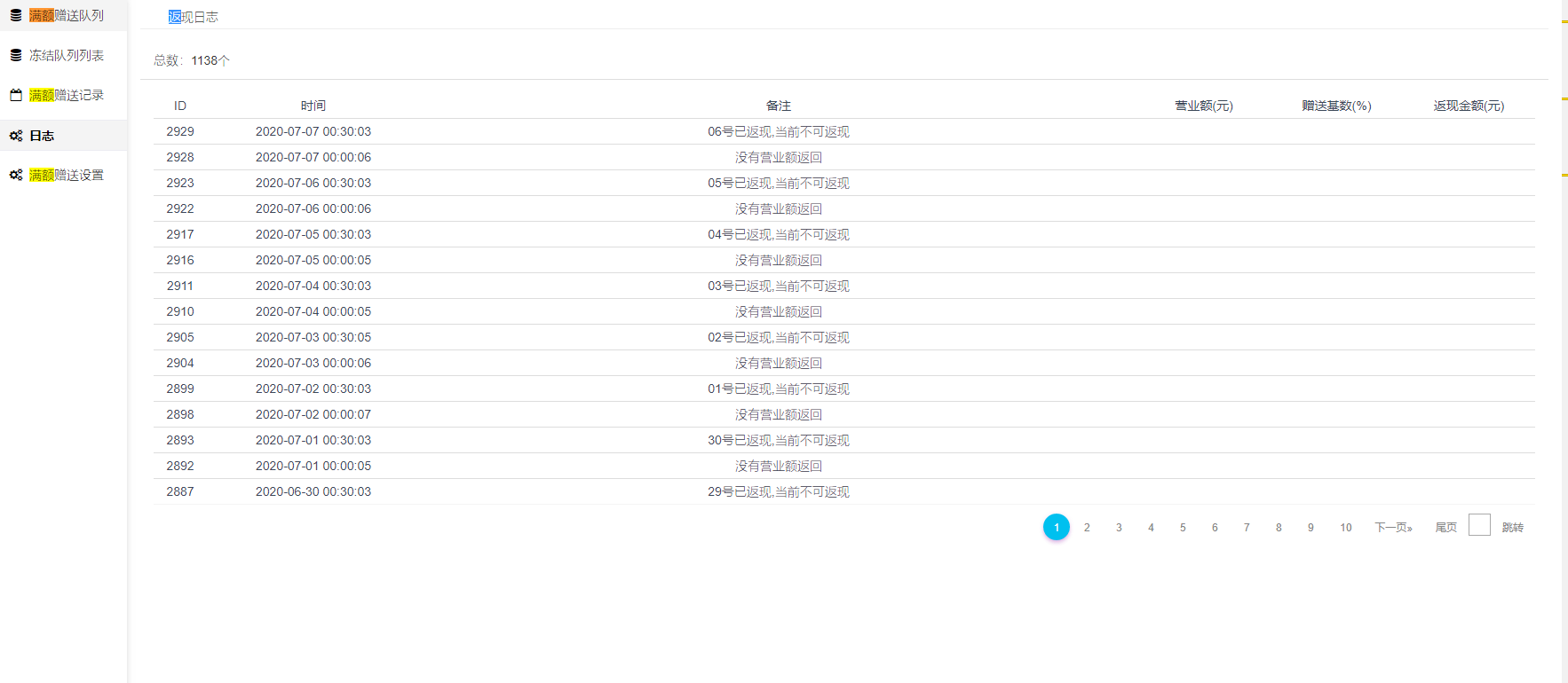## 满额赠送每日返现日志记录,可根据记录进行查询返现日志。