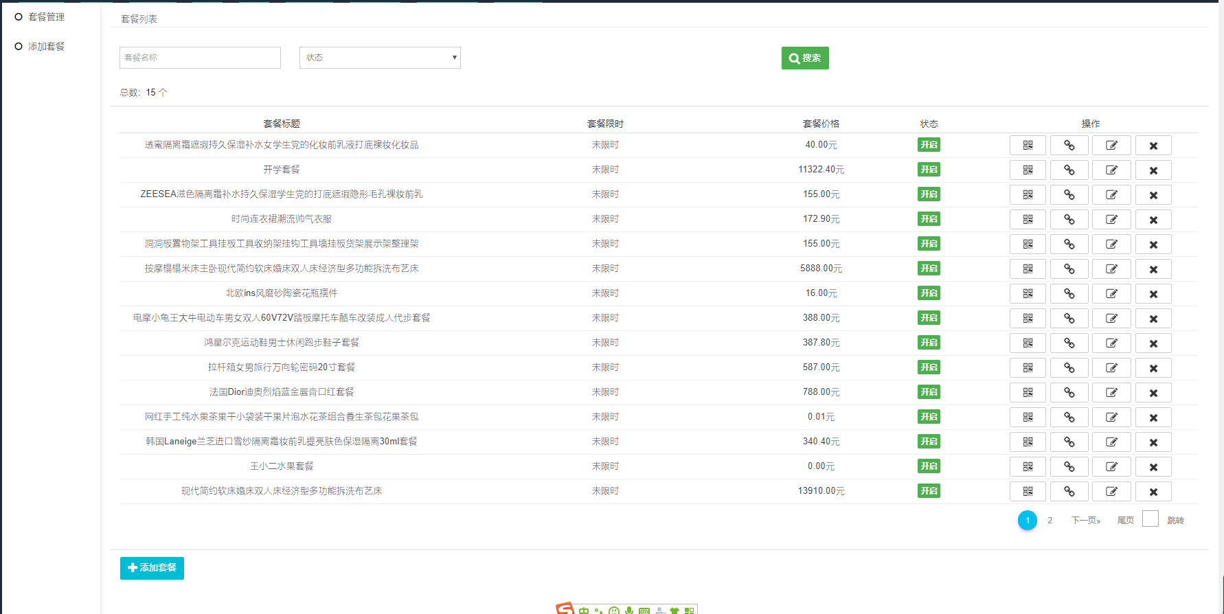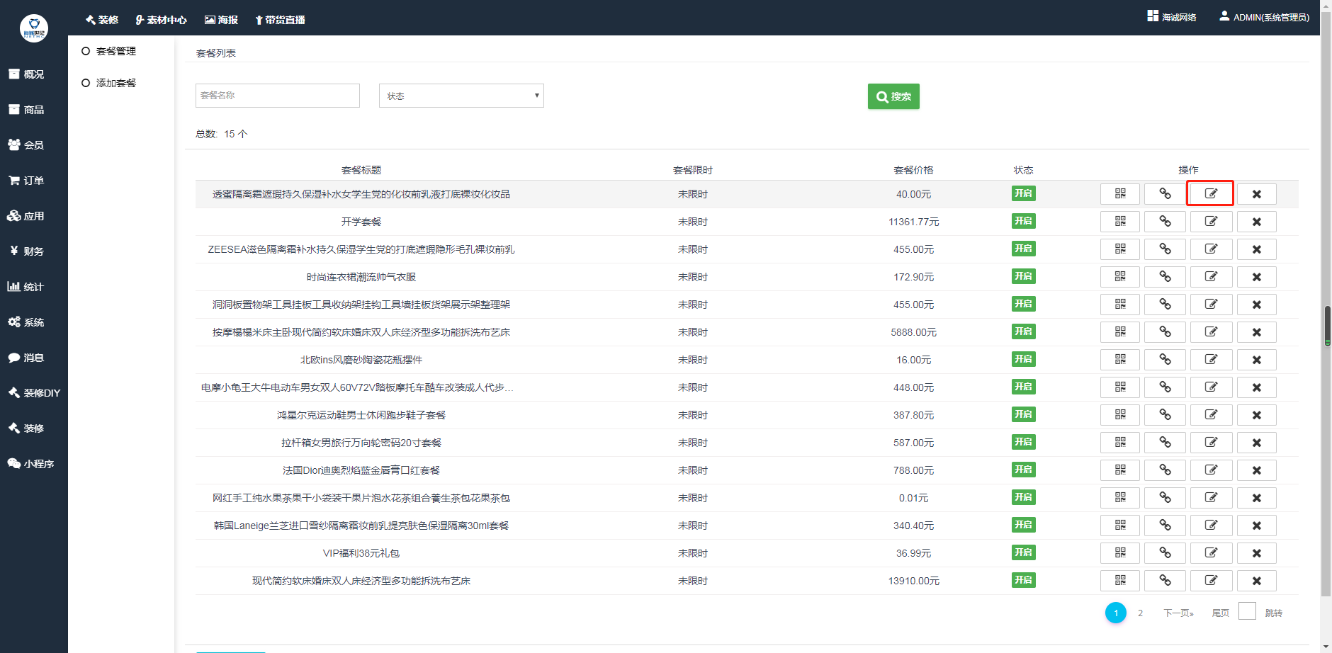 * ## 这里可管理后台已添加的商品套餐。可修改编辑已经添加的套餐数据。
