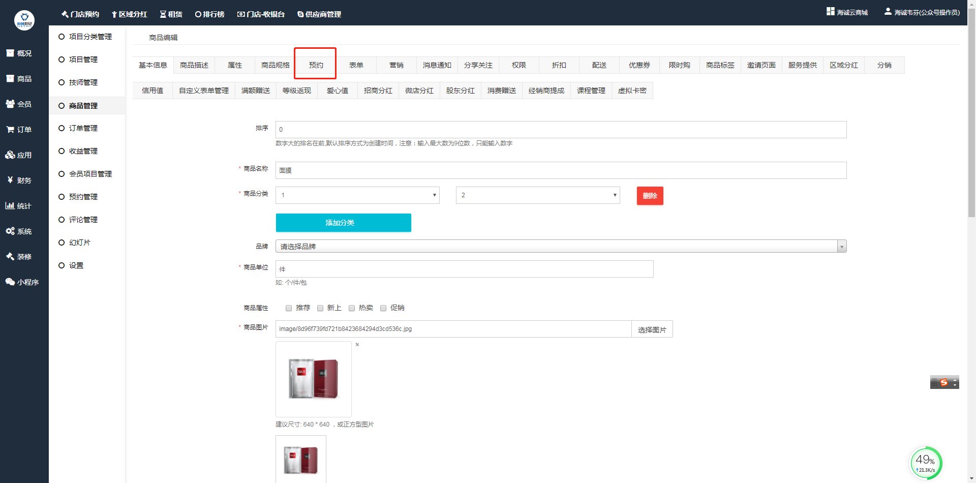 ## 商品营销、分润、返现等设置挂件同商城商品设置,预约商品为虚拟商品,用户购买支付后订单立即完成,用户获得对应项目预约资格及预约次数。