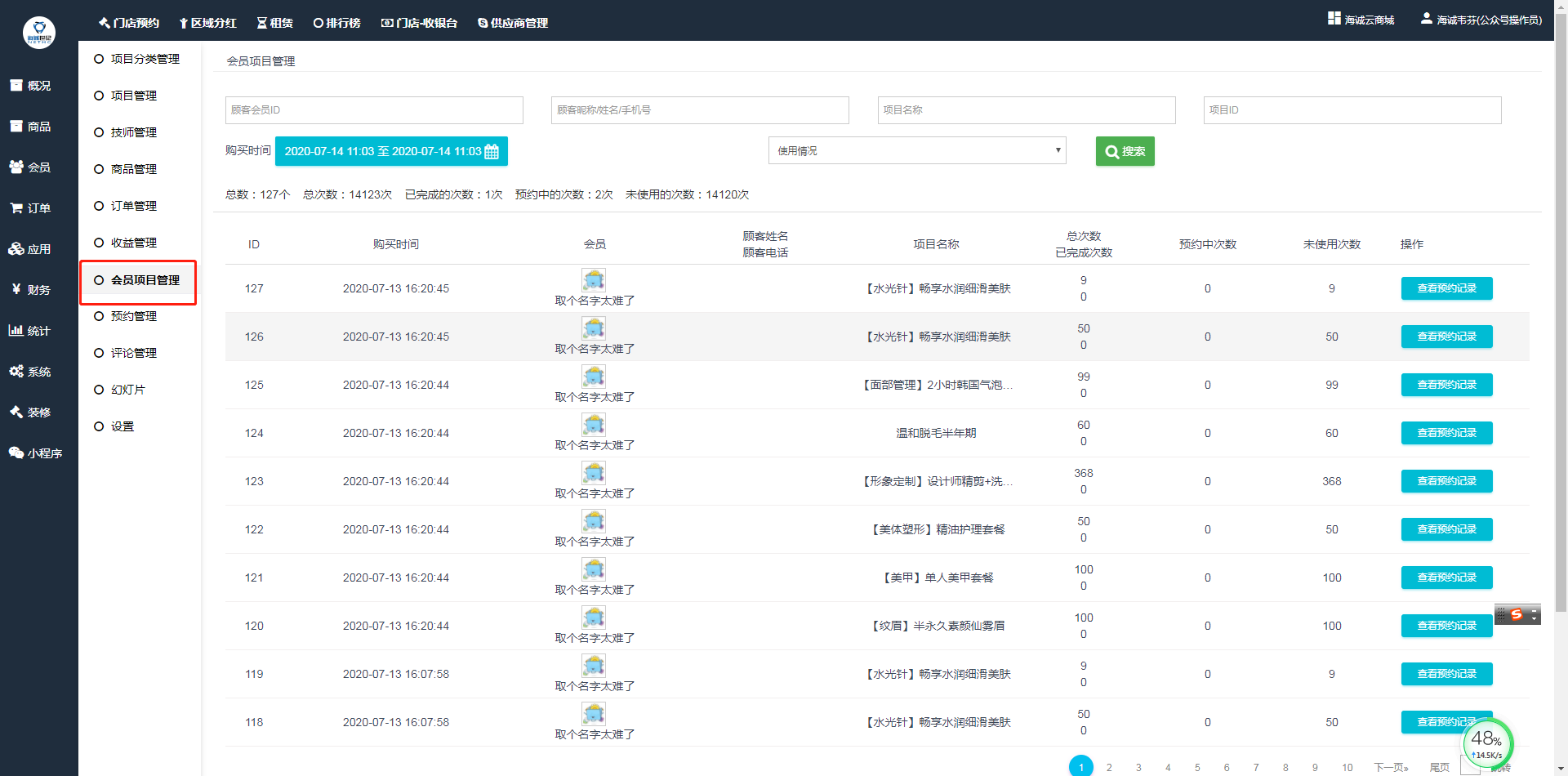 ## 用户购买预约商品后,会员项目管理即产生一条会员项目记录。