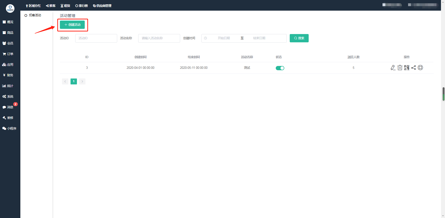 ## 二、点击创建活动