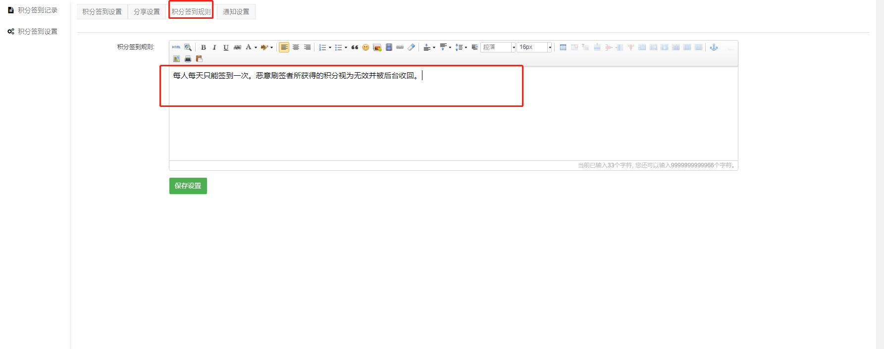#### 显示在签到页面的规则描述,可填写活动注意事项或活动声明等规则内容。