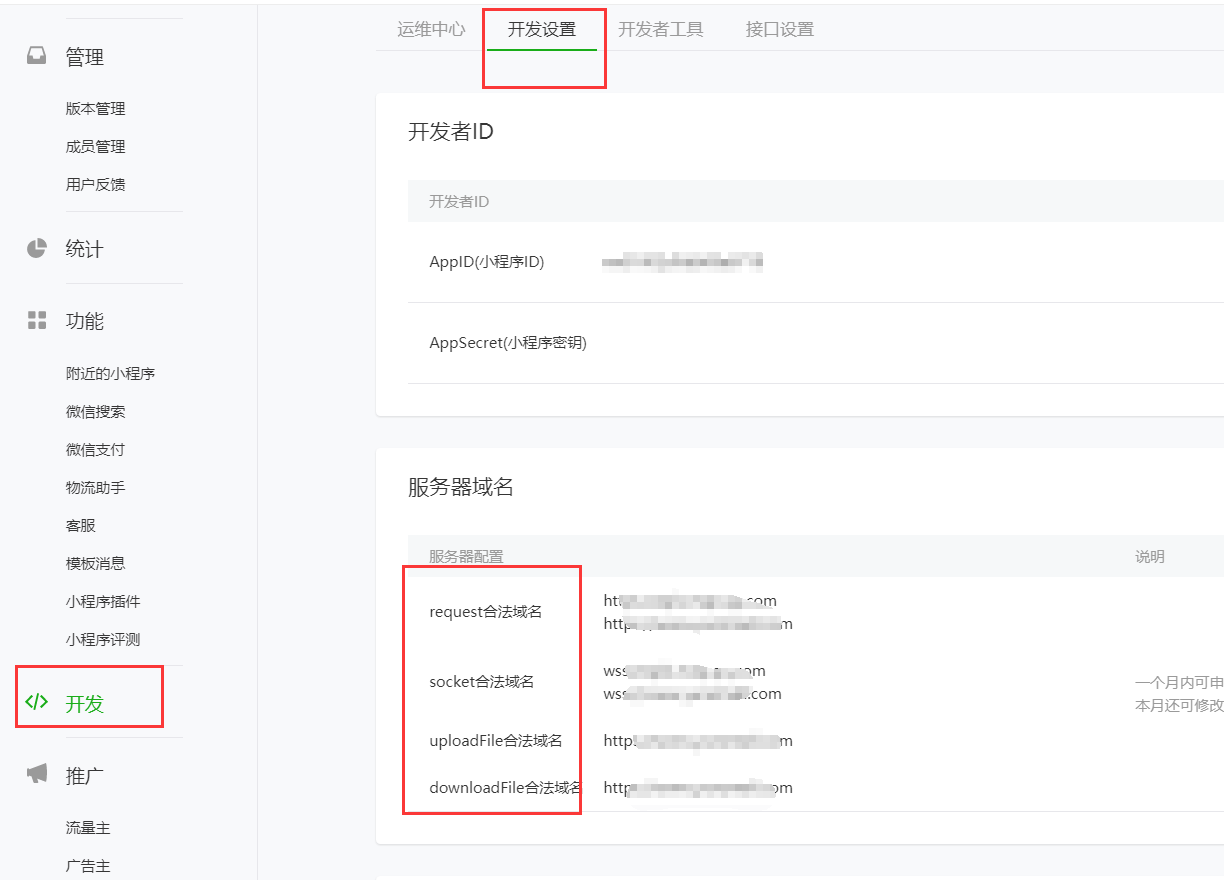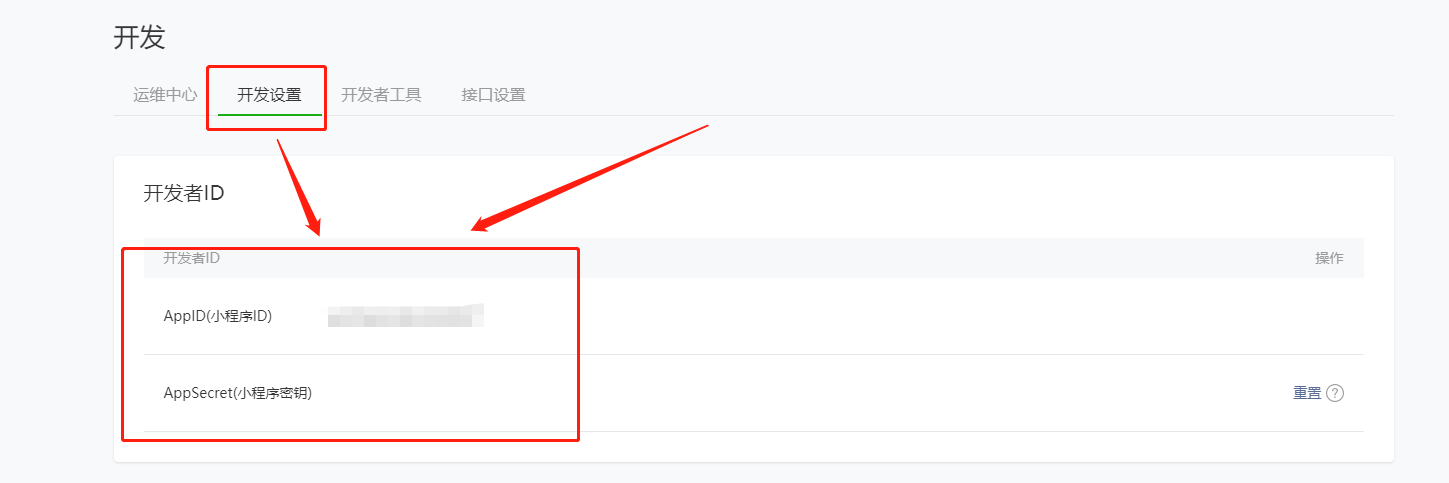 #### 注:获取小程序AppID和AppSecret需要登录小程序平台mp.weixin.qq.com < 开发 < 开发设置 获取复制。