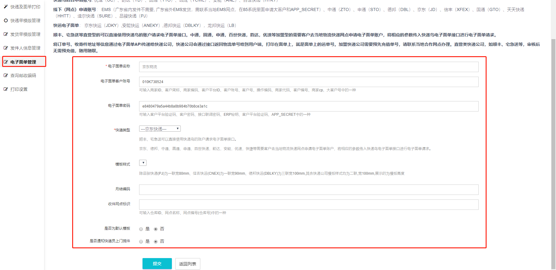 ## **与线下快递网点签约后,如何配置电子面单信息呢?**