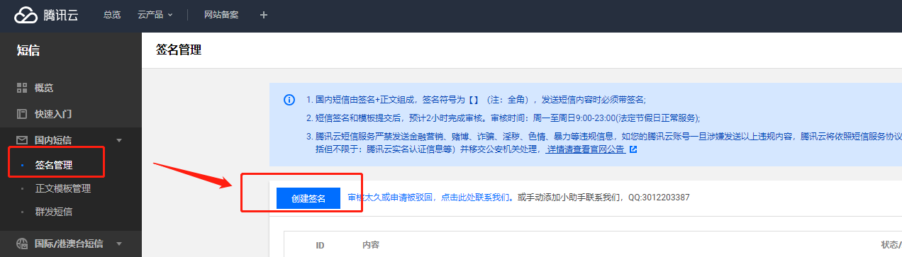 ## 创建好后,复制签名粘贴到商城后台腾讯云签名处。通过审核后,才能使用。