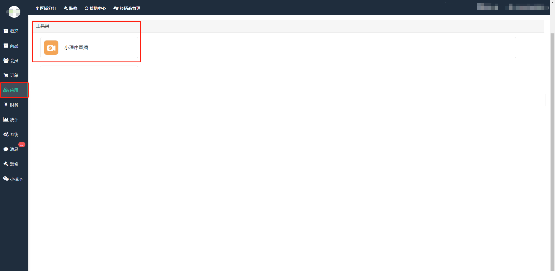 ## 打开海诚商城系统,进入**应用**找到**小程序直播**功能插件并点击进入。