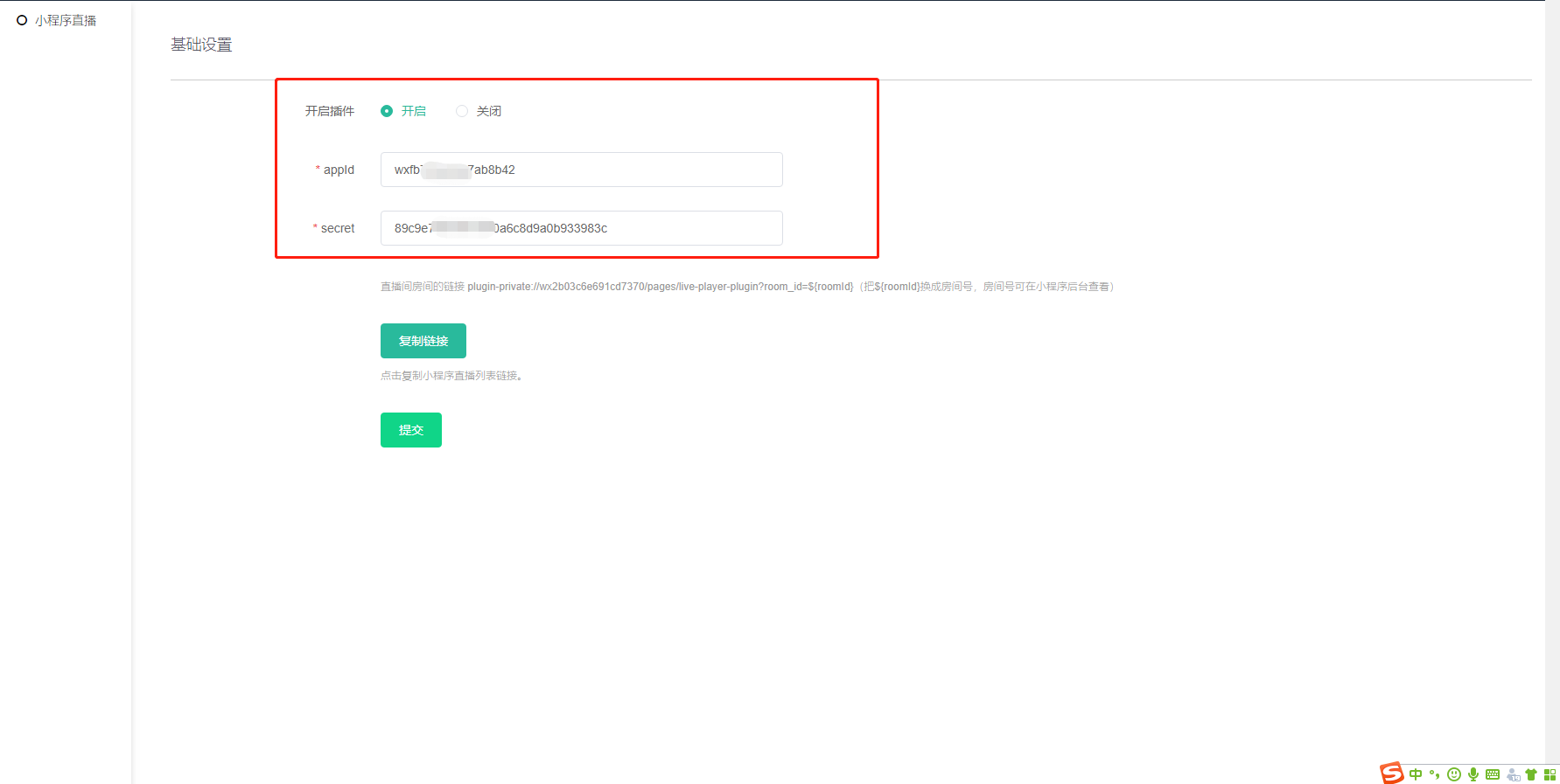 AppSecret(小程序密钥)秘钥在生成或者重置时只能显示一次,需要及时把参数给复制出来保存好。如果忘记的话只能重置秘钥才可以找回,相对比较麻烦,建议用分档或者记事本的形式保存在电脑上。