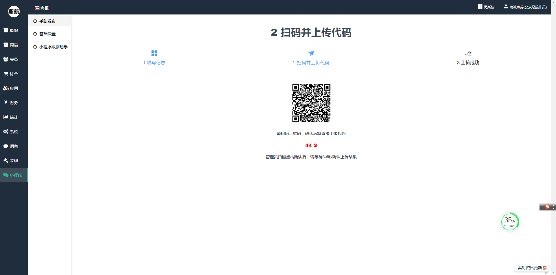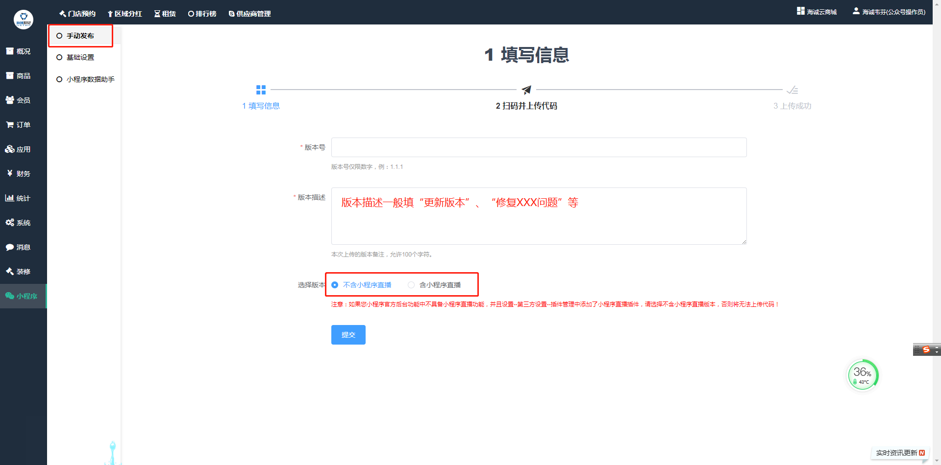 ## 第三步、后台手动发布小程序:**应用–小程序–手动发布**,如下图