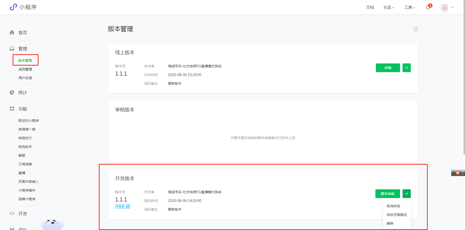 ## 审核时间1-7个工作日,通过之后,登录小程序后台,点击版本管理,发布小程序即可。