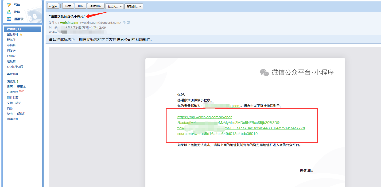 ## 5、登录邮箱**点击链接激活账号**