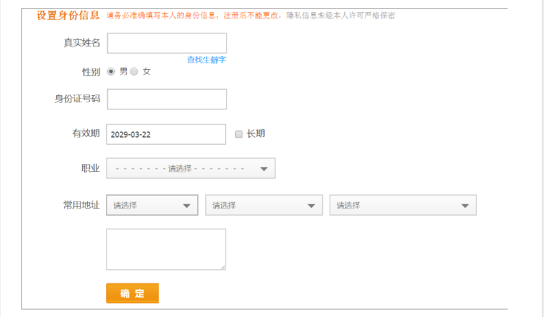 >[danger]## **温馨提示:真实姓名、身份证号码:必填,需要您的真实信息。注册完成后不可修改**