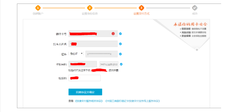 ## 5、设置支付方式,手机号码为此银行卡在银行预留手机号码,如不正确请与银行核对,如手机号已不再使用及时在银行更新为常用手机号