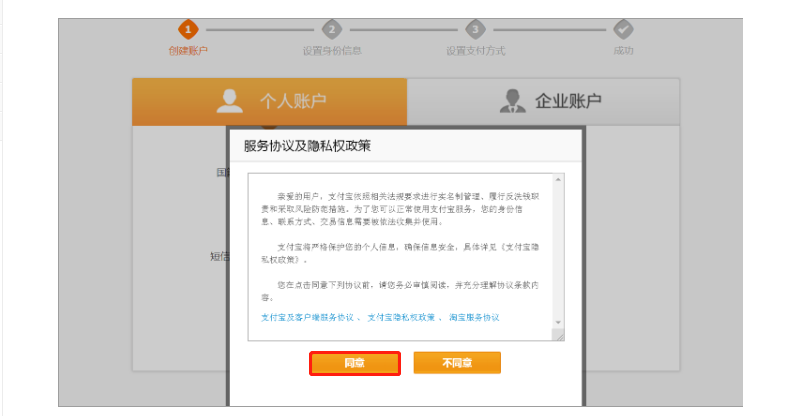 ## 2、点击【**同意**】服务协议及隐私权政策