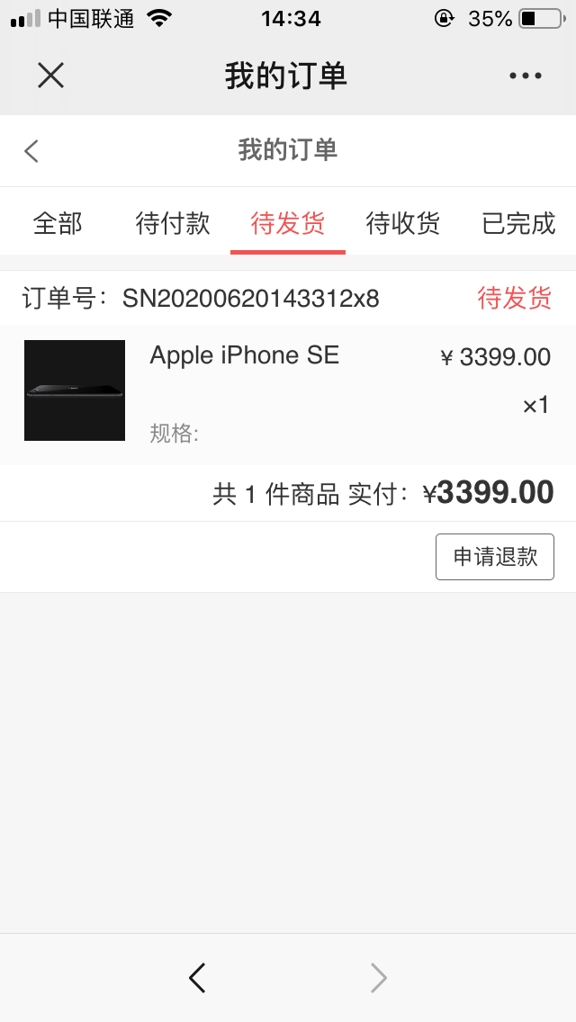 ## 一,商城订单支持退款退换和换货操作1,以退款为例1)针对已付款待发货订单买家在前端“我的订单—待发货订单”页面可选择“申请退款”,申请售后处理方式可以选择“退款(仅退款不退货)、退款退货、换货”详细显示如下
